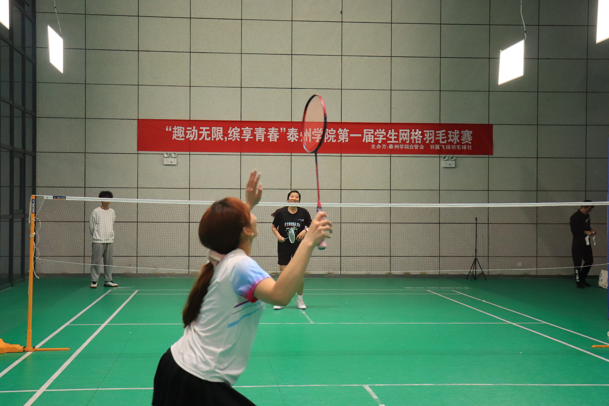 比赛共设男子单打、女子单打、混合双打三个项目,每场比赛都紧张激烈,扣人心弦。选手们身着运动装,手持羽毛球拍,或轻盈跳跃,或迅猛扣杀,让人目不暇接,不仅展现了高超的球技,更展现出了坚韧不拔的精神风貌。经过预赛、半决赛、决赛的激烈角逐,共产生男子单打、女子单打、混合双打一、二、三等奖共九项奖项。校教务处、学生工作处部门负责人观看决赛并为获奖选手颁发证书。