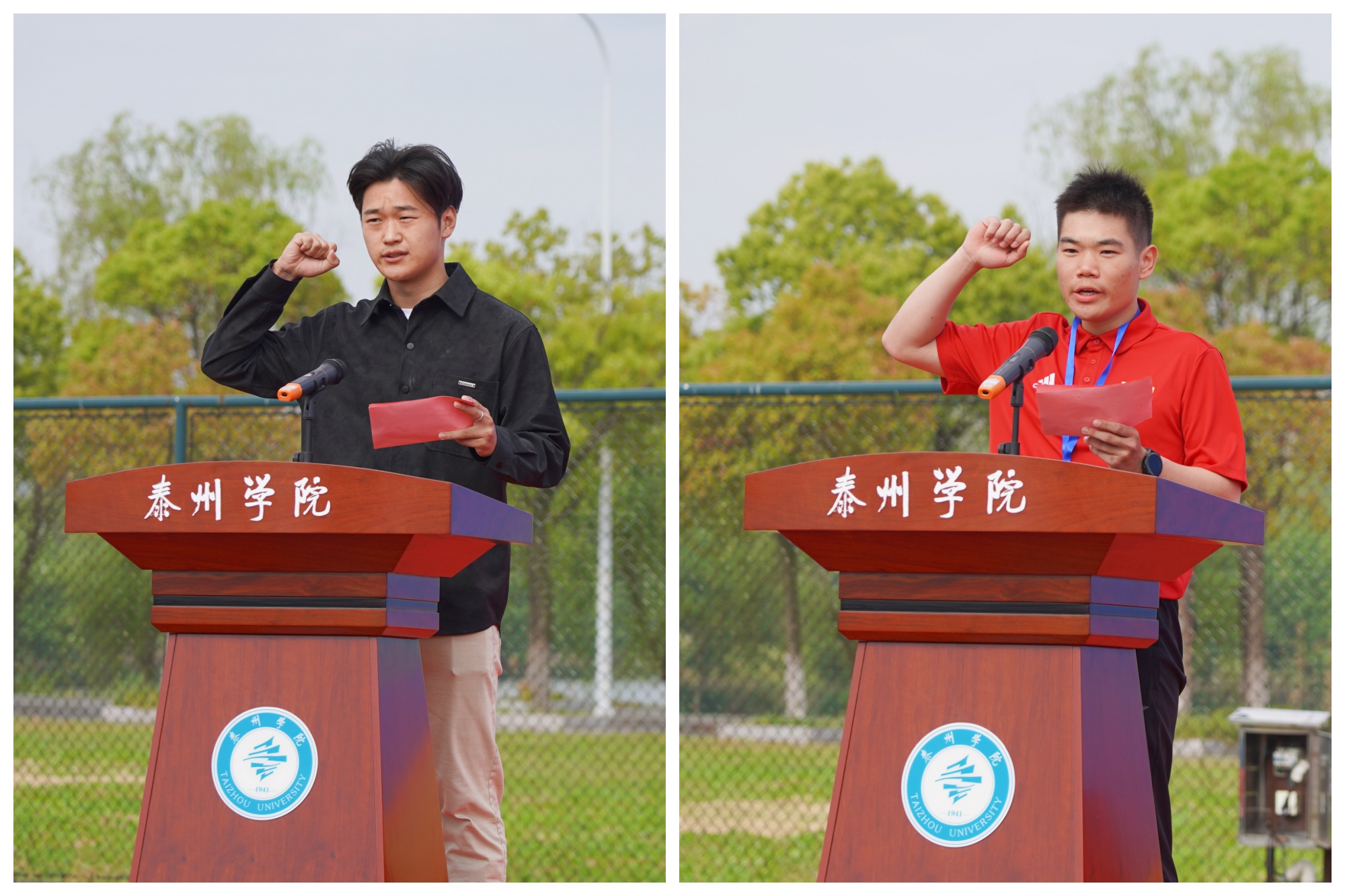 运动员代表陆成杰、裁判员代表陈啸老师分别代表全体运动员和裁判员宣誓,表示将严格遵守比赛和赛场纪律,确保比赛公平、公正、公开,有序开展、顺利进行。
