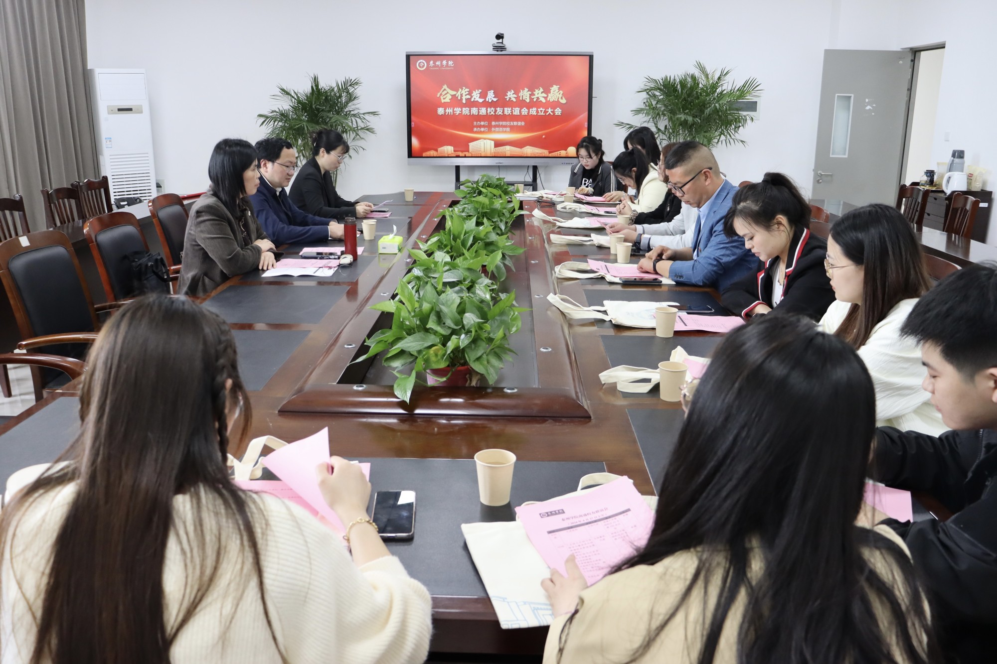 南通校友联谊会由外国语学院牵头成立,学院主要负责人、相关教师及南通地区部分校友代表参加会议。会议推选校友张晓卫任会长、顾安军任副会长、黄琳玲任秘书长。