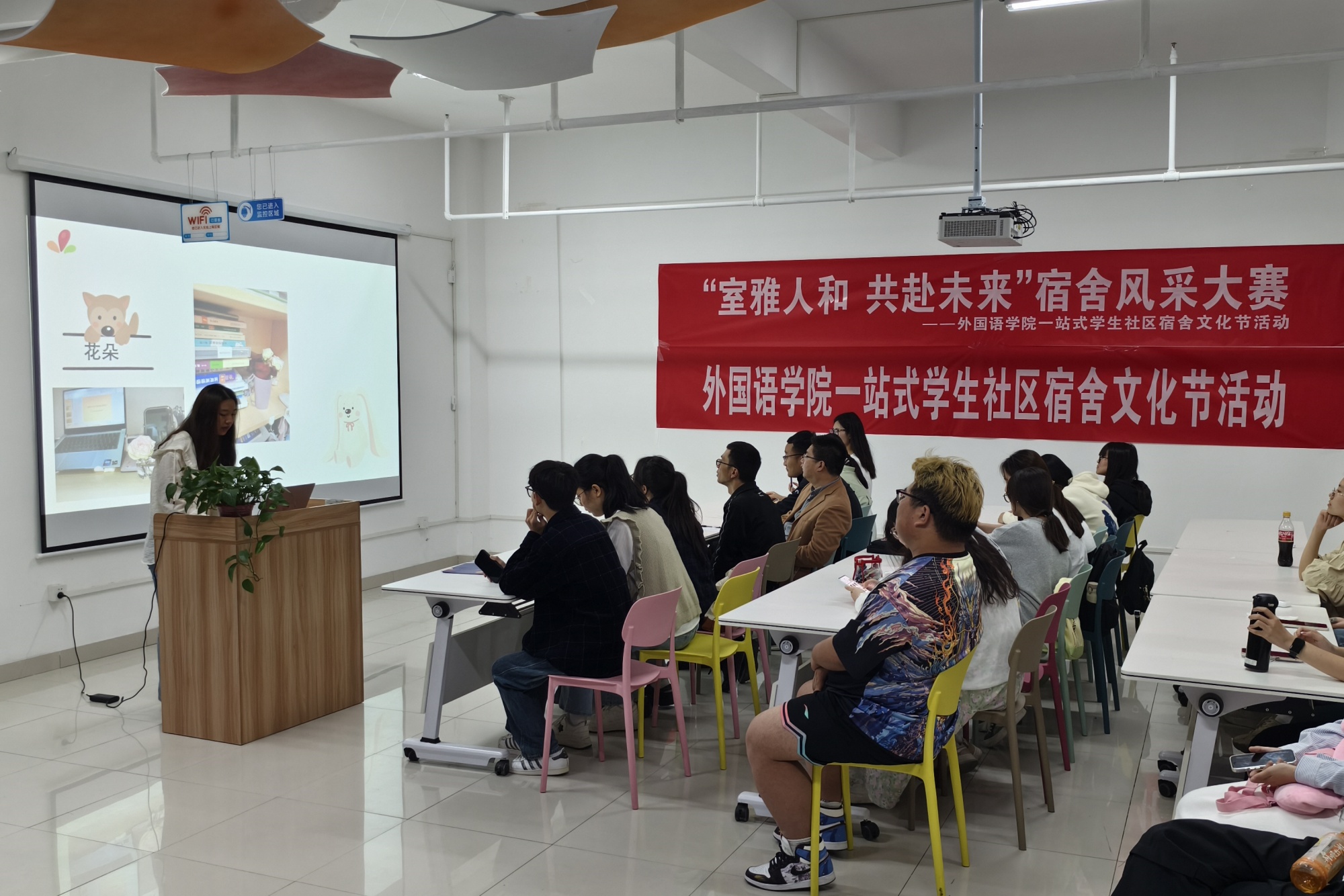 5月22日-27日,外国语学院首届“一站式学生社区”宿舍文化节在学校一站式社区服务中心举办。外国语学院党总支副书记全小军、学工第一、第二支部书记、学工办老师和数百名参赛学生参加了活动。