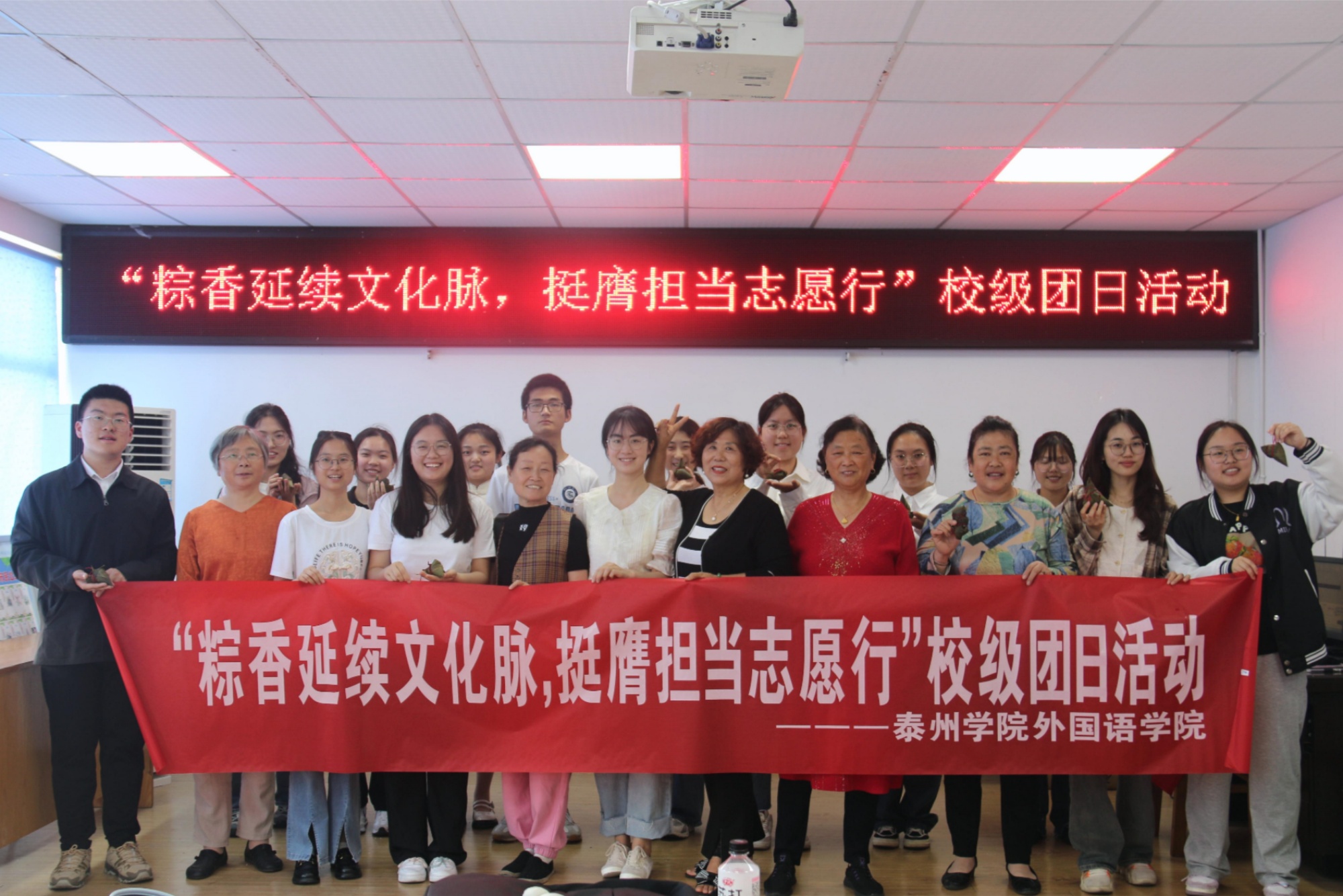 为鼓励青年大学生走进社区,奉献青春力量,6月3日下午,外国语学院在泰州市海陵区凤凰社区开展“粽香延续文化脉,挺膺担当志愿行”校级团日活动。外国语学院党总支副书记全小军和部分学生代表参加活动。