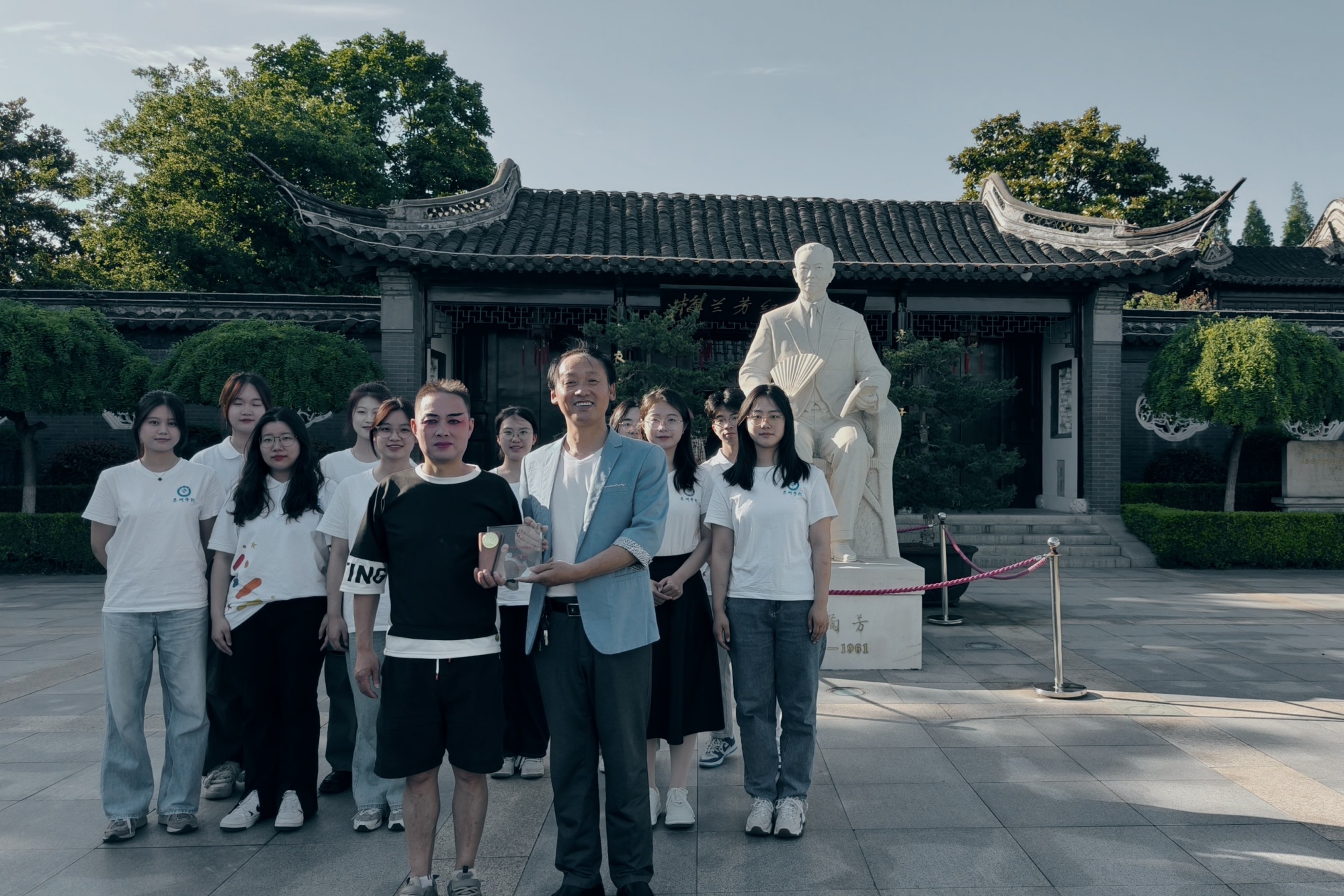 今年是梅兰芳诞辰130周年,项目团队观看了海陵区“梅乡戏韵”戏曲票友大赛,参赛的59名戏曲票友一一亮相,剧种有京剧、淮剧、扬剧、越剧、锡剧、黄梅戏等,他们或激昂高亢,或婉转悠扬。团队成员们与大赛负责人交谈,向正在梅园练习戏曲基本功的小朋友学习经典戏曲动作,深刻地了解到文化传承的艺术魅力。