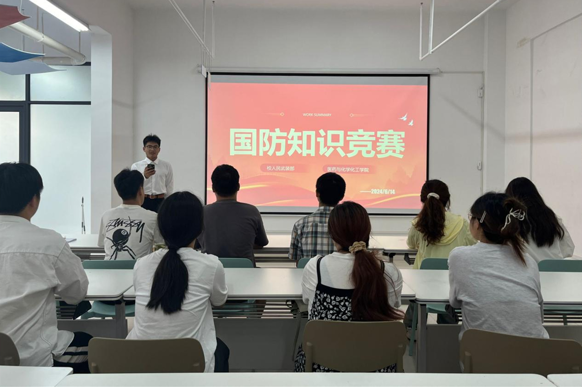 为进一步强化学生国防观念和忧患意识,激发青年学子的爱国热情,6月14日下午,校人民武装部、医药与化学化工学院在一站式学生社区联合举办以“踔厉奋发强国防,勇毅前行向复兴”为主题的国防知识竞赛。