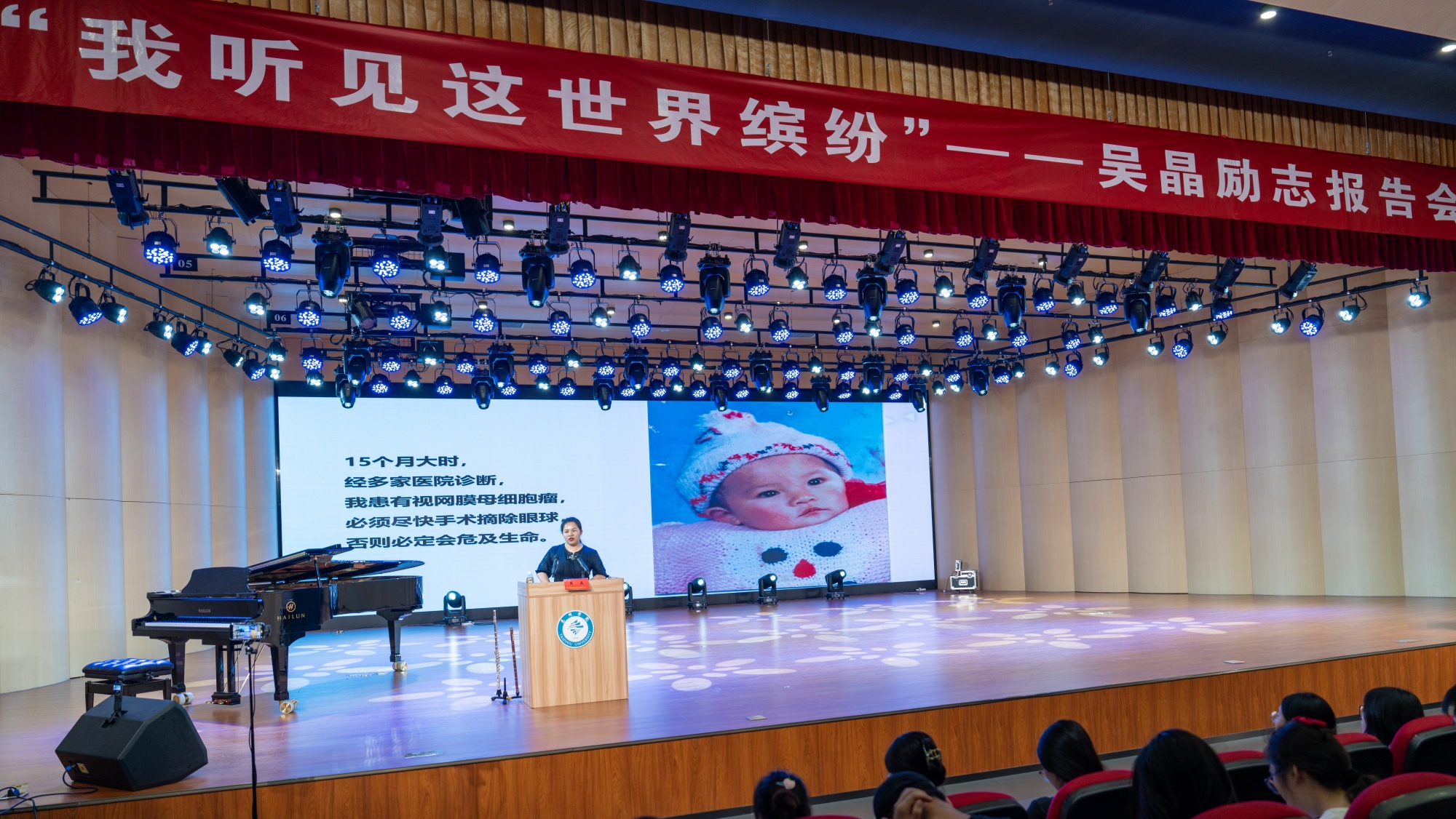 光不待我,我自成光。6月15日下午,被誉为“中国的海伦•凯勒”的盲人青年长笛演奏家吴晶女士走进sunbet申搏音乐学院音乐厅,为sunbet申搏师生带来了一场题为《我听见这世界缤纷》的生命教育励志讲座。本次活动由校关工委、学生工作处主办,音乐学院承办。