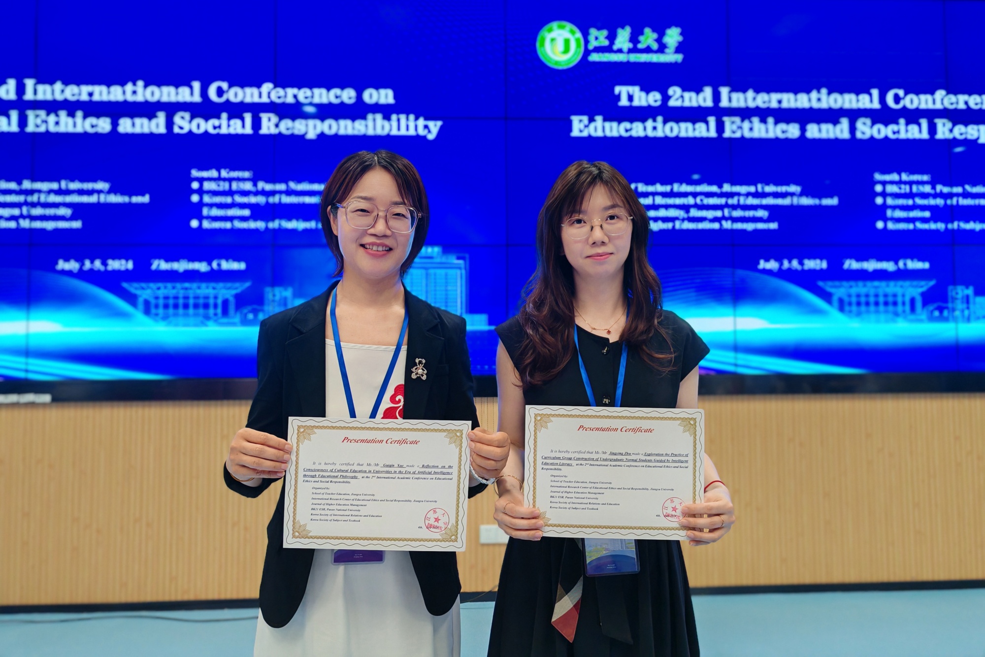 7月4日,第二届“教育伦理与社会责任”国际学术会议在江苏大学成功举办,会议主题为《人工智能时代教育的责任与挑战》。教育科学学院薛桂琴、祝晶莹两位教师受邀参加了此次会议,并在会上发言。