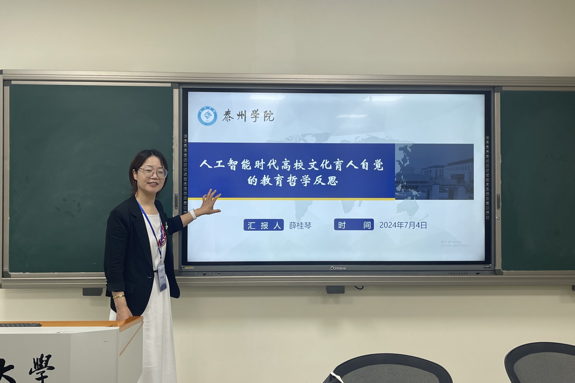 薛桂琴老师作了题为《人工智能时代高校文化育人自觉的教育哲学反思》的发言,探索人工智能如何与传统教育价值观保持一致,以及人工智能和谐融入教育范式的责任。祝晶莹作了题为《智能教育素养导向的本科师范生课程群建设实践探究》的报告,探讨了教育系统如何应对人工智能的到来,如何培养具有责任意识、可持续发展的人才。