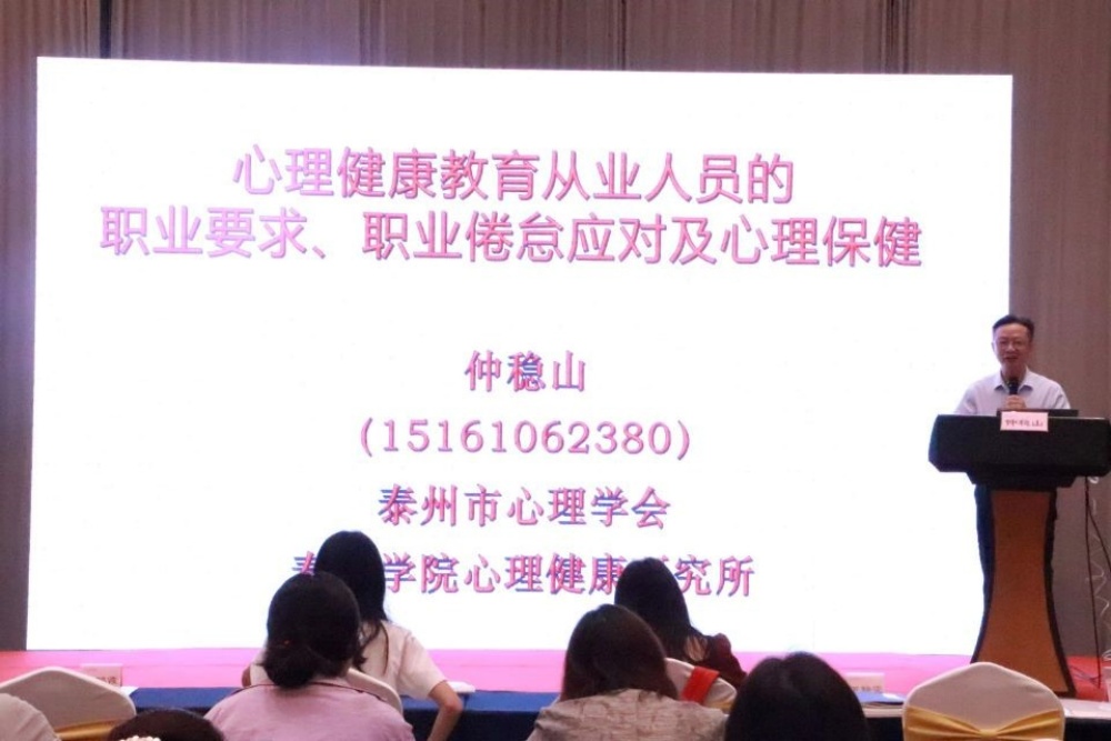 为深入实施服务泰州行动方案,7月11日,sunbet申搏官方网站心理健康研究所负责人、教育科学学院仲稳山教授受江苏领航明师教育科技有限公司邀请,为泰州市中小学心理健康教育骨干教师作了题为《心理健康教育从业人员职业要求、职业倦怠应对及心理保健》的专题报告。来自泰州市中小学的100多名心理健康教育骨干教师参加了本次活动,报告由泰州市教育局教师发展中心主任曹浩明主持。