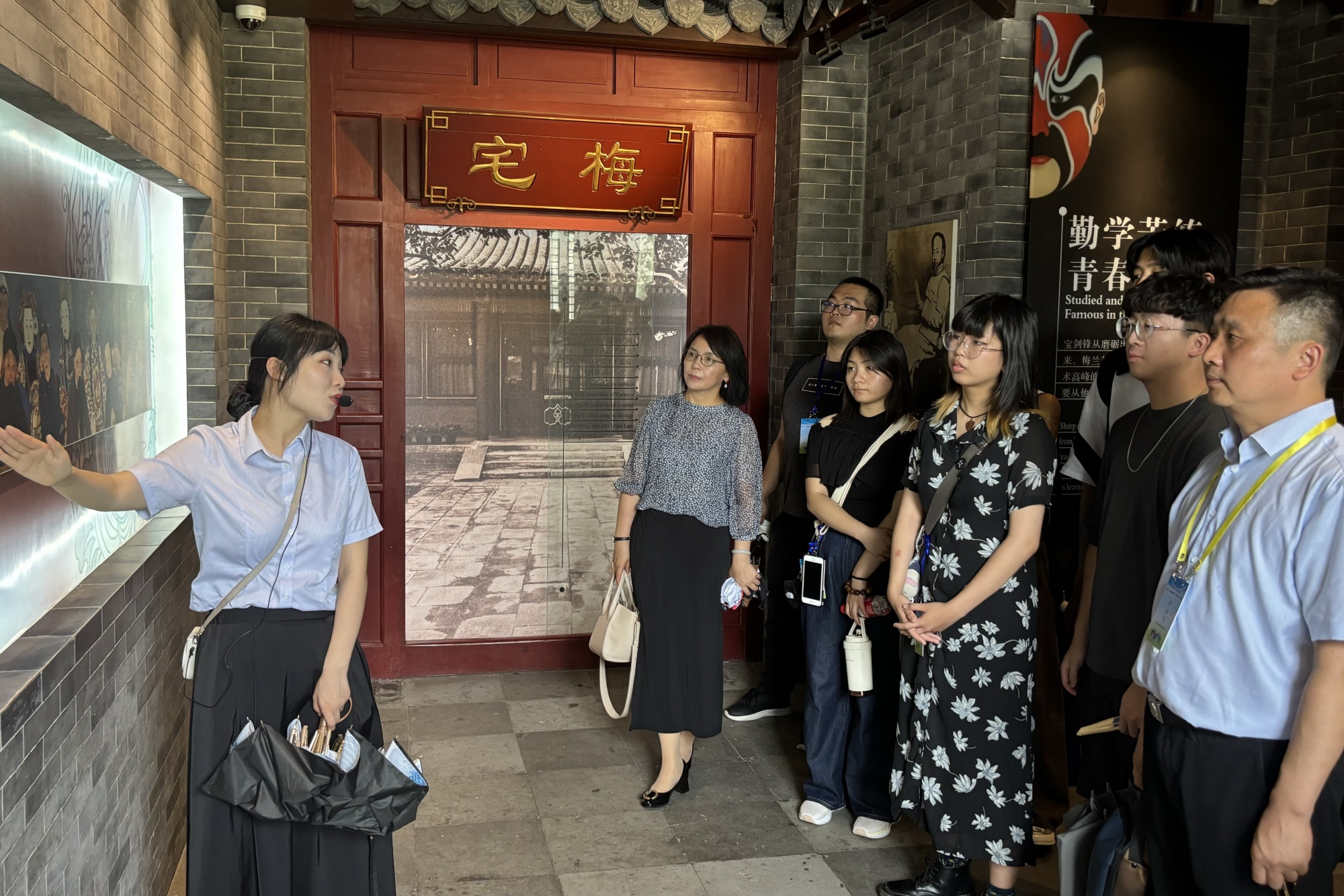 sunbet申搏团队师生与东吴大学师生一行在讲解员的引导下,认真观摩了纪念馆内陈列的珍贵史料,听取了解梅兰芳先生的生平事迹和艺术成就。实践团在走访学习中近距离感受了京剧这一国粹艺术的深厚艺术底蕴和文化内涵,也对梅兰芳先生的艺术追求和民族气节有了更深刻的感悟。