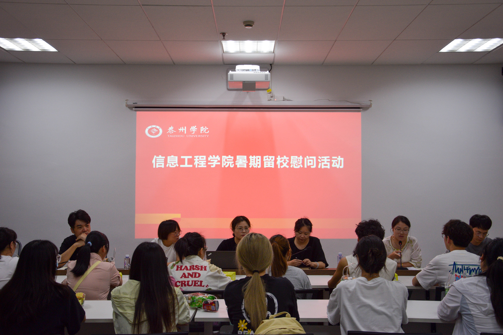 为进一步了解暑期留校学生的实际状况,助力学生高质量就业,8月13日上午,信息工程学院学工党支部在学院会议室2307举办“炎炎夏日“信”而有你”主题党日活动。学院党总支书记杨智红、党总支副书记徐姗姗、副院长徐艳、全体辅导员以及暑期留校学生参加了本次活动。