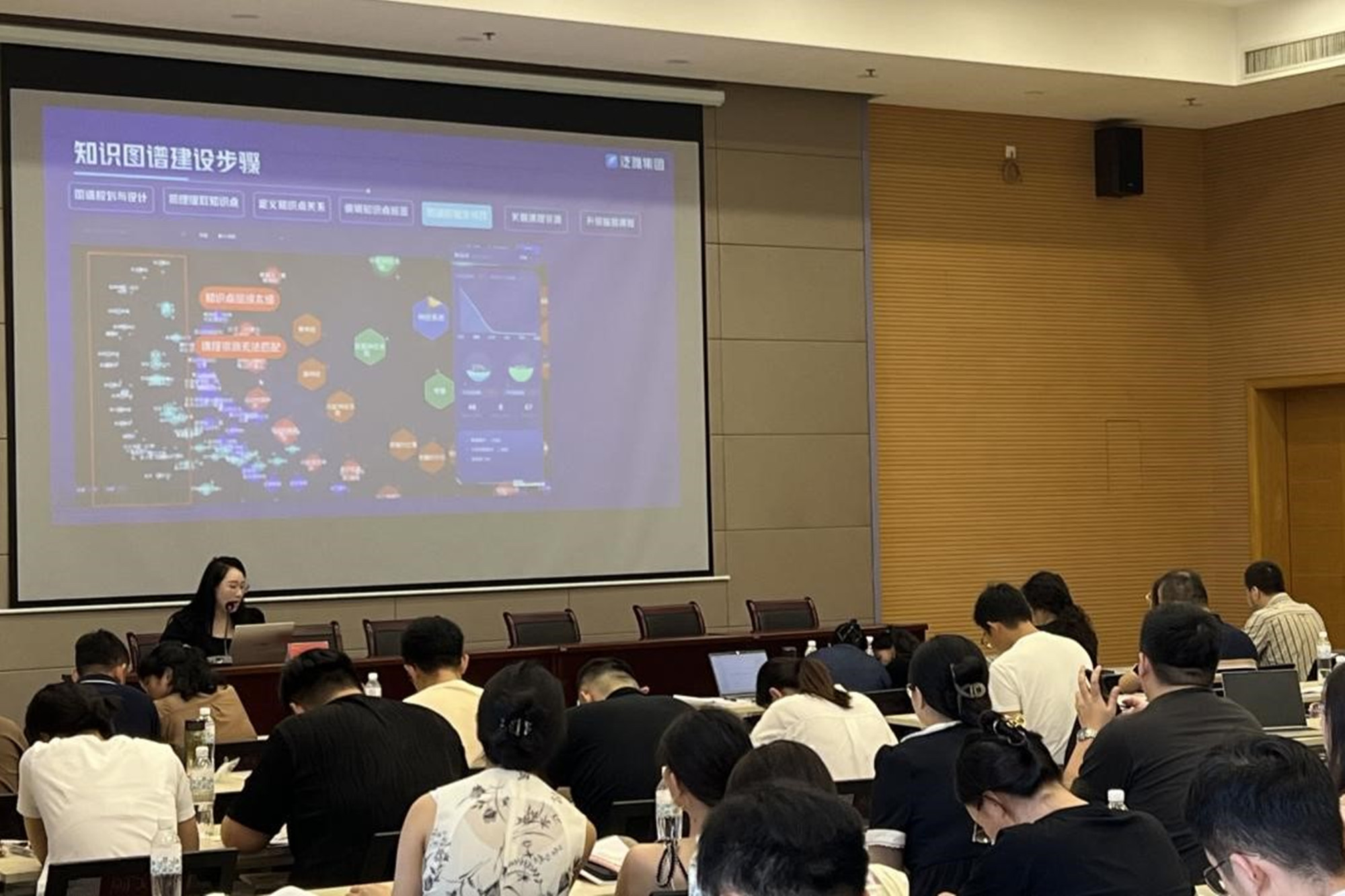 上午,超星集团课程研究中心总编、智慧课程建设项目负责人孙磊,超星集团数智研究中心高级讲师、项目经理张艺馨分别以“探索教学创新——教师创新大赛概览与评价维度解析”和“数智创新AI时代智慧课程建设与应用”为题展开精彩讲座。孙磊围绕大赛背景介绍、竞赛模块和评价维度分析三个方面进行了全方位的指导;张艺馨向教师们展示了AI在教育领域的广阔应用前景,解析了如何将知识图谱和AI技术融入课程建设,提升教学效果和学生学习体验。互动交流环节,教师们针对数字化课程建设过程中遇到的疑难问题展开了深入探讨,张艺馨对相关问题进行了详细的解答。