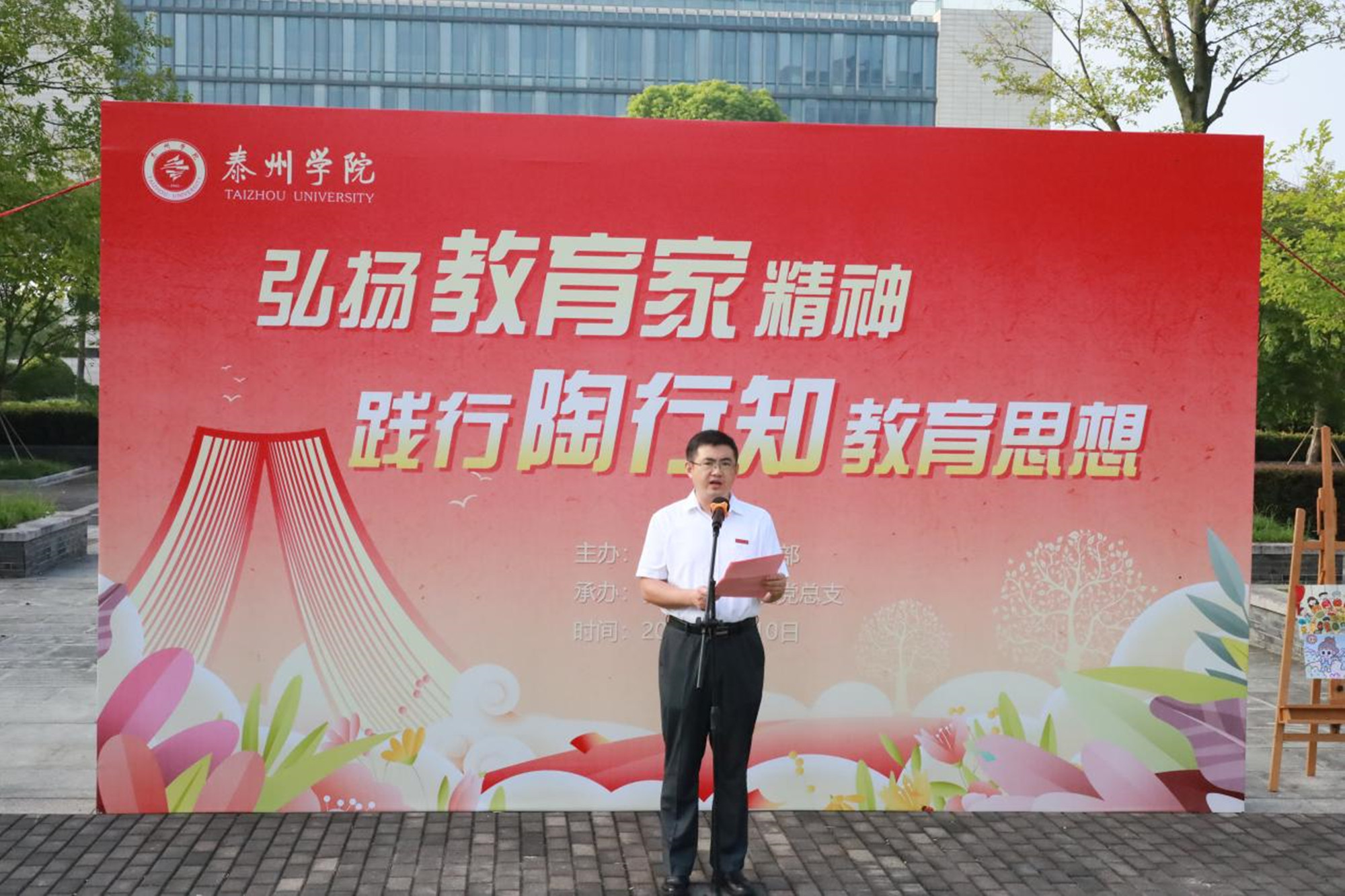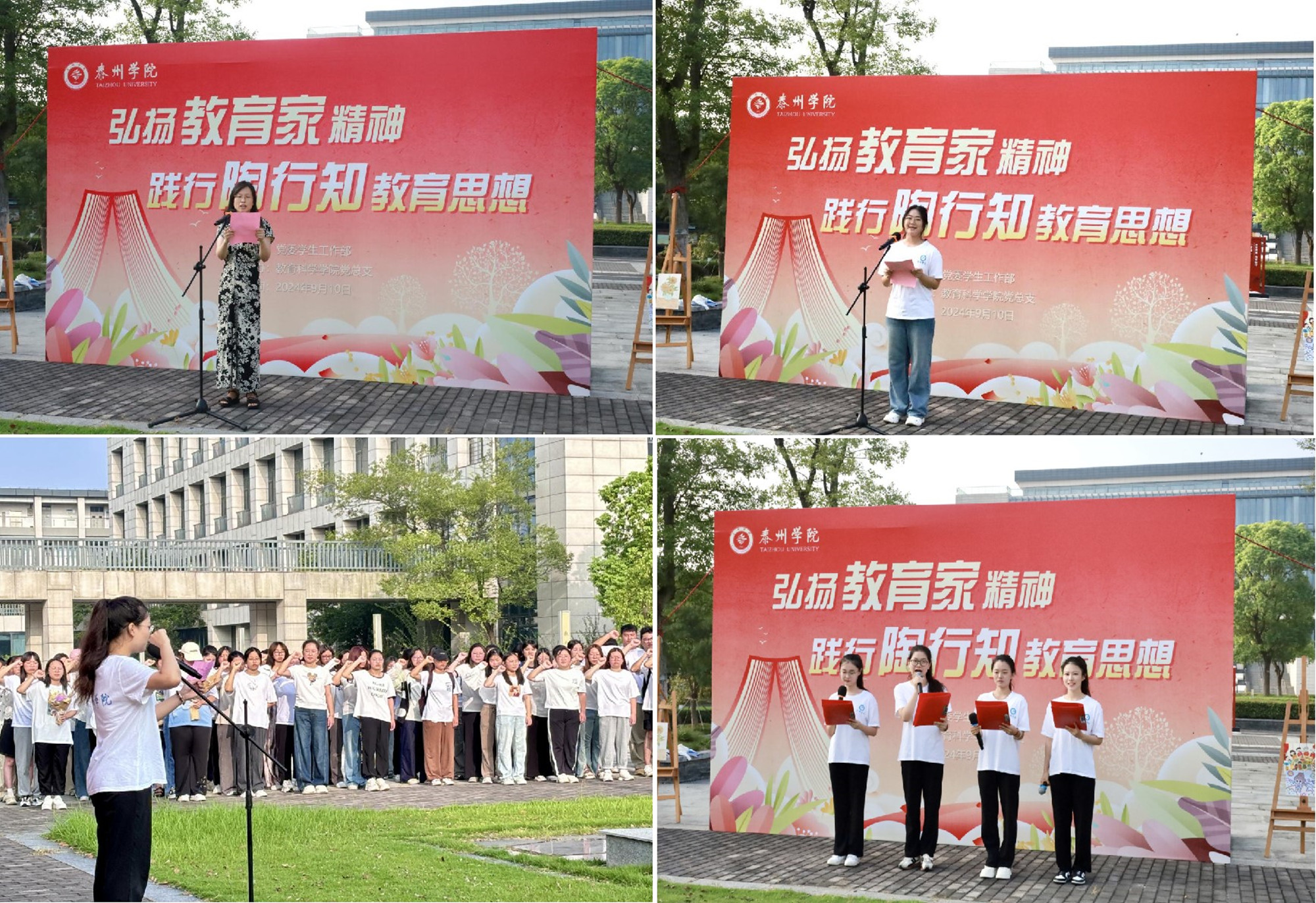 仪式上,四位学前教育专业学生表演的《以行知之我,逐华夏之阳》朗诵,展现了新时代青年的担当与追求。2023级小学教育(定向)班周烨佳的发言,呼吁同学们用实际行动践行陶行知先生宝贵的精神财富。