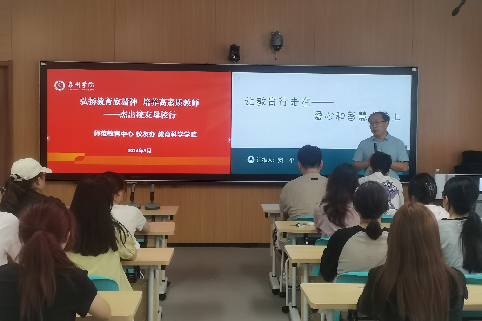 为弘扬教育家精神,引领师范生成长成才,9月11日,师范教育中心、校友办公室、教育科学学院邀请杰出校友窦平老师为2023级小学教育专业定向师范生开设《让教育行走在爱心和智慧之路上》专题讲座。讲座由师范教育中心主任蔡俊主持。