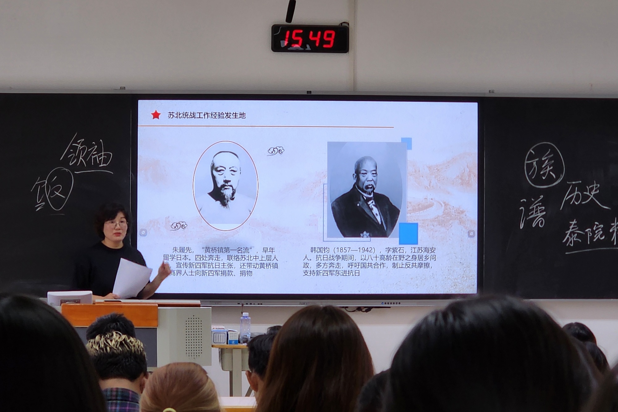 在“中国特色社会主义是历史和人民的选择”专题讲授过程中,泰州市党史方志办公室党史研究一处处长、一级主任科员潘国琴以《追忆光辉岁月 感悟泰州红色名片》为题有机嵌入教学环节,为同学们生动形象地讲述了“扬泰地区第一个党组织产生地”“红十四军主要发源地”“苏北统战工作经验发生地”“华中抗日根据地的奠基地”“苏中七战七捷战斗地”“渡江战役东线主阵地”“人民海军诞生地”等七张泰州市红色名片,让同学们真切感受到在血雨腥风、战火纷飞的革命岁月里,泰州地区人民为夺取新民主主义革命胜利作出的重要贡献,揭示了“中国特色社会主义,承载着几代中国共产党人的理想和探索,寄托着无数仁人志士的意愿和期盼,凝聚着千千万万革命先烈的奋斗和牺牲,凝聚着全国各族人民的奋斗和实践,是近代以来中国社会发展的必然选择,是历史和人民的选择”这一重要论断。