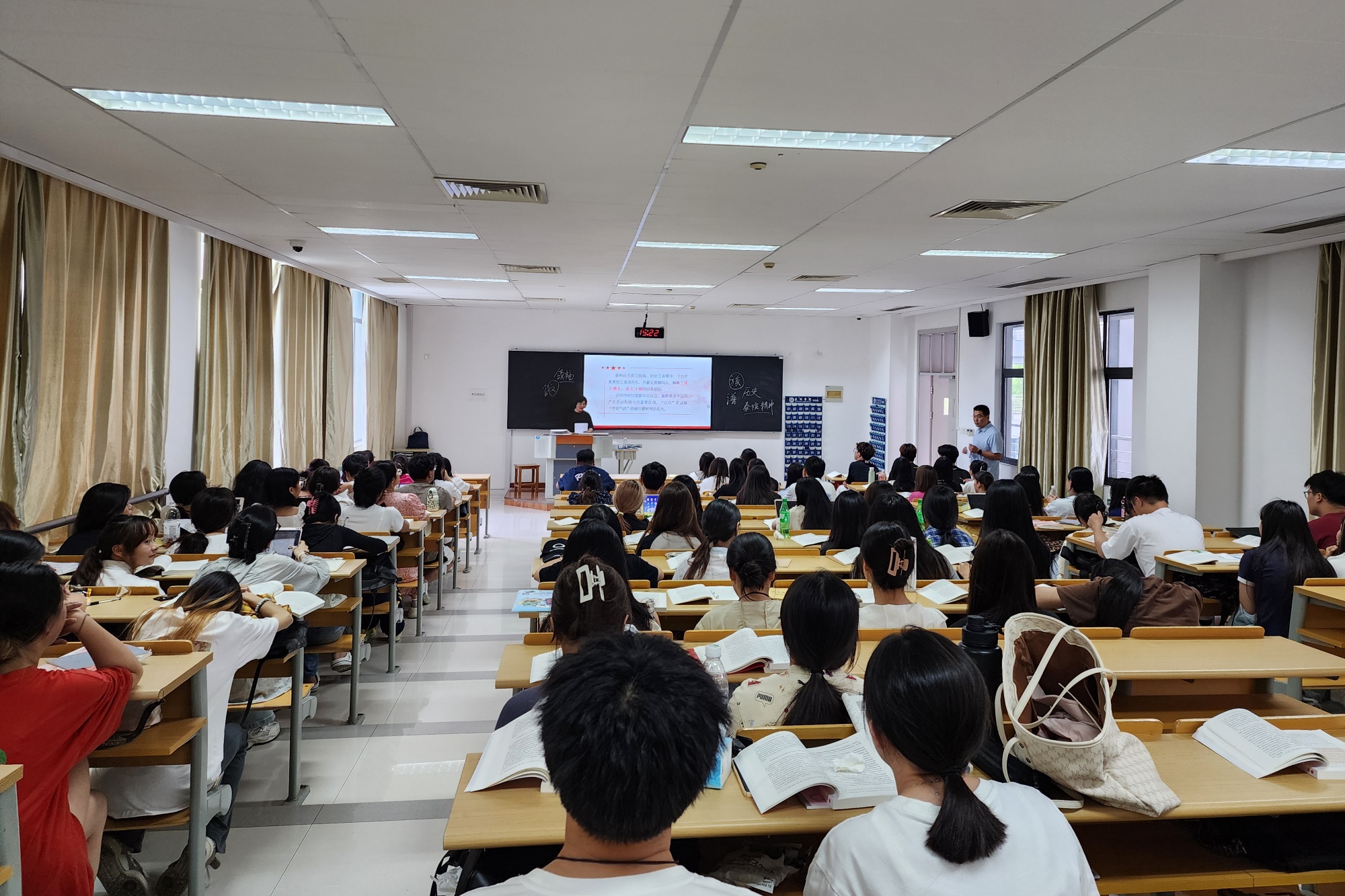 为深入学习贯彻习近平新时代中国特色社会主义思想和党的二十届三中全会精神,引导大学生知史爱党、知史爱国,增强历史感和责任感,9月10日下午,泰州市党史方志办带着“‘泰有感’党史”走进“习近平新时代中国特色社会主义思想概论”教学现场,为2022级音乐学师范1班、2班的100多名学生们讲授了一堂生动的思政课。