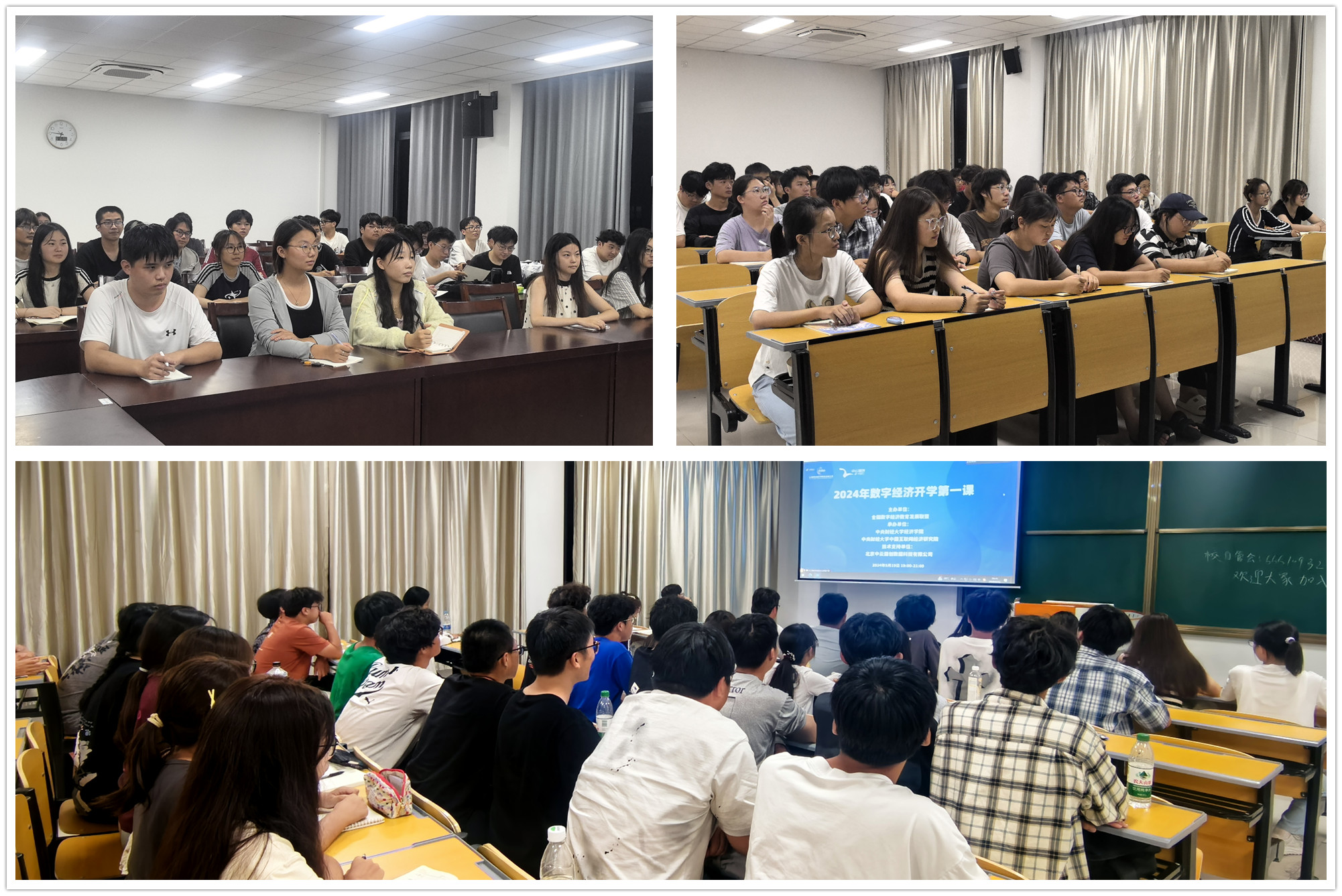 9月19日晚,经济与管理学院举办数字经济专业开学第一课。院长朱军、数字经济教研室全体成员、2023级和2024级数字经济专业全体学生参加活动。本次活动由全国数字经济教育发展联盟主办,中央财经大学中国互联网经济研究院、中央财经大学经济学院承办,以直播形式面向全国所有数字经济专业入学新生、往届生和专业教师开展,旨在进一步赋能高校数字经济专业发展,为数字经济专业学生做好数字经济科普。