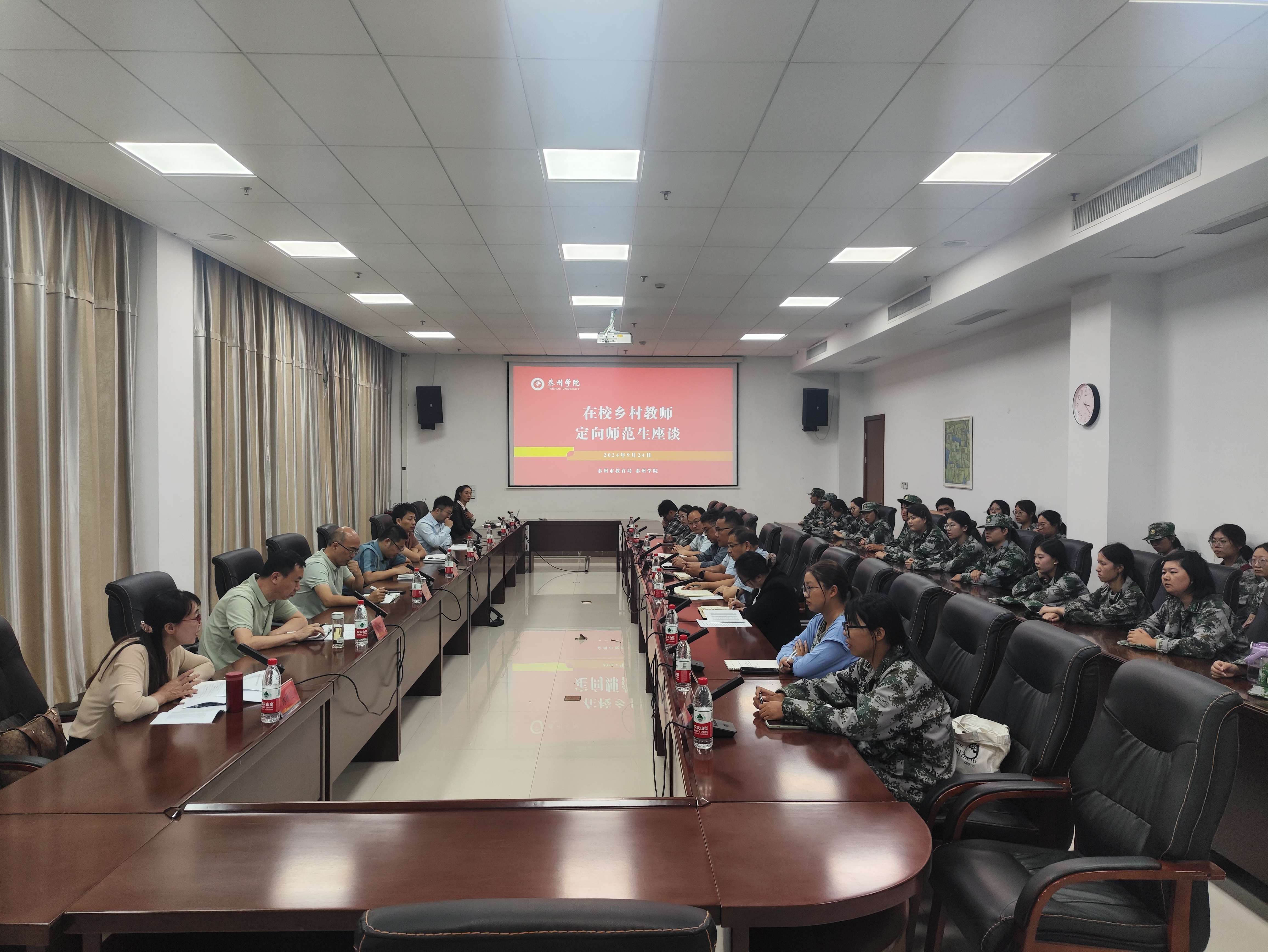 为做好乡村教师定向师范生培养工作,9月24日下午,市委编办、市教育局在sunbet申搏召开乡村教师定向师范生座谈会,中共泰州市委机构编制委员会办公室机构编制监督检查处处长、一级主任科员席正中、一级主任科员田军、泰州市教育局教师工作处处长邹京明、泰州市教育局教师工作处四级主任科员贾寅龙、泰兴市教育人才服务中心主任张华明、兴化市教育局人事科主任陈银兵、泰州市姜堰区教育人才服务中心主任沐秋兰出席会议,校教务处、学生工作处、师范教育中心、人文学院、教育科学学院相关负责人参加会议。