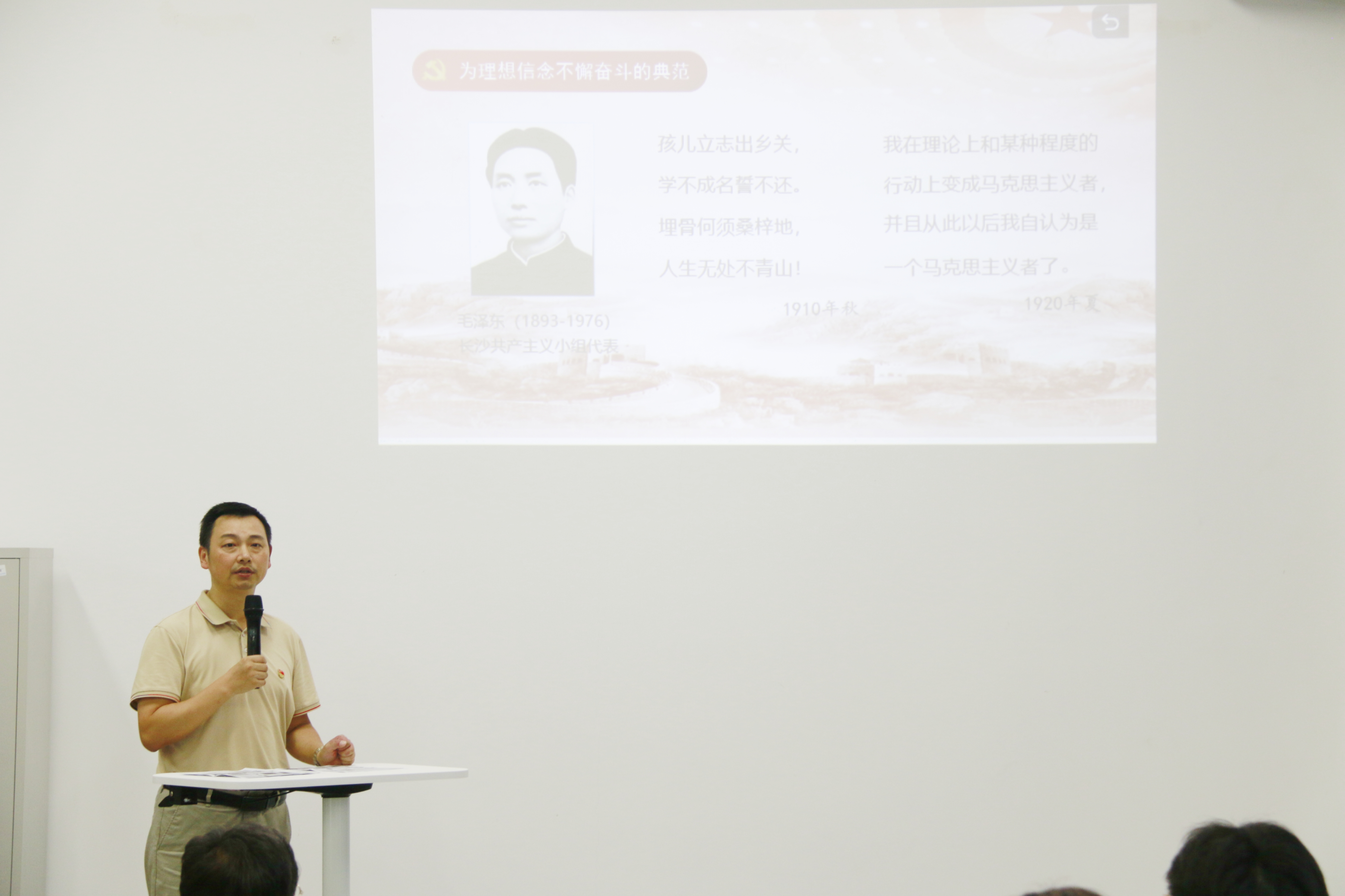经济与管理学院党总支书记黄彬以《从党史国史中汲取前进的智慧和力量》为题为师生带来一节生动的党课。黄书记从中国共产党的创建过程和中国共产党为什么“能”?两个方面讲述了中国共产党的奋斗故事。他提出,希望我院广大师生也能自觉将个人理想融入党和国家的事业之中,与国家、民族同呼吸、共命运,为实现中华民族伟大复兴的中国梦贡献青春力量。青年学生代表张晓庆同学声情并茂地讲述了梅兰芳先生的故事,让同学们认识到梅兰芳先生用行动诠释了什么是真正的艺术家,什么是民族的脊梁。