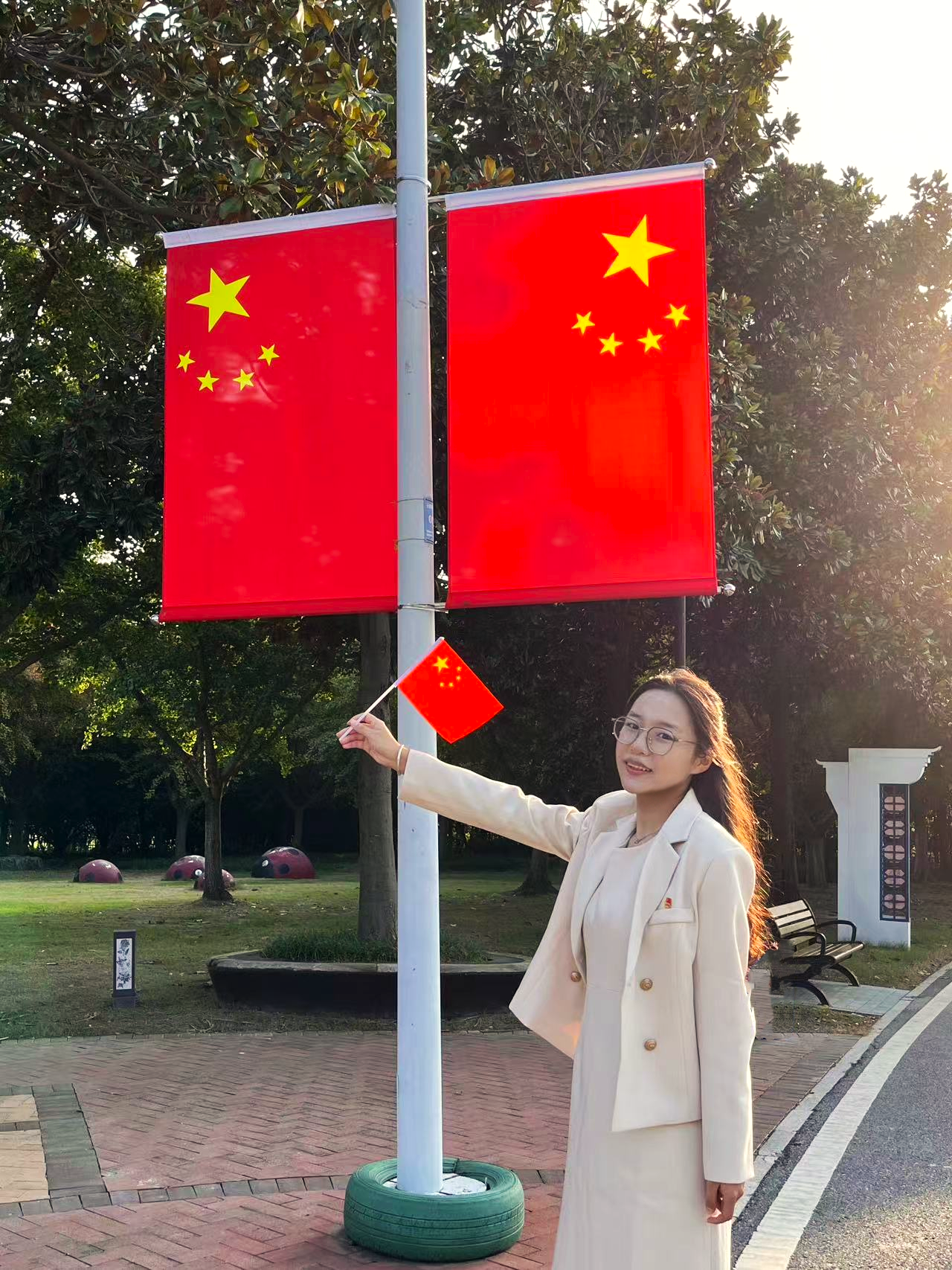 一张照片,遥寄相思情,共话爱国心。国庆当天,假期留校同学纷纷前往泰州主城区拍照打卡,用镜头定格下与国旗同框的瞬间。学院张晓庆同学出生在十一的凌晨,破晓而生,与国同庆。晓庆的爷爷说“我家孙女从一出生就会追光,追的是五角的星光”。今天是祖国母亲的第75个生日,也是她与祖国母亲一同庆祝的第21个生日,值此,她“以青春之名,书写清澈挚爱;以心中红星,献礼盛世中华”。与此同时,一个特别的“聆听建国故事”活动也正温暖上演。葛思妤同学与家中刚好1949年出生的奶奶围坐一起,共话建国初期的珍贵记忆。老人们深情讲述,晚辈们静心聆听,将红色基因与时代精神凝聚其中,传承不息,共筑中国梦。