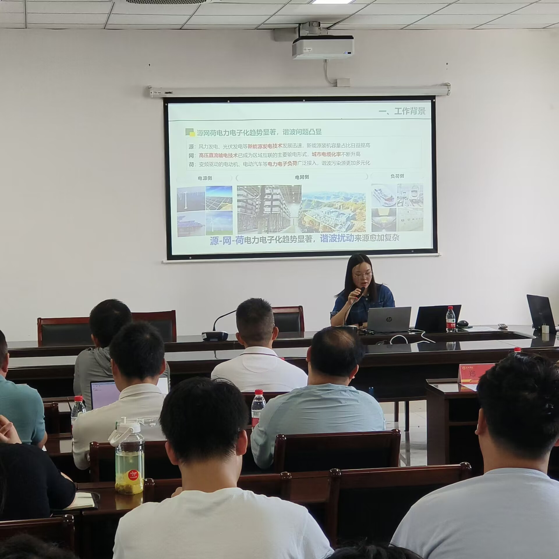 泰州市电机工程学会理事李顺宗首先围绕“配电网电能质量治理”主题,结合无锡环胜精密合金材料有限公司工程实例,展开了学术交流研讨。国网江苏省电力科学研究院郑仙博士、张家港智能电力研究电力电子所吴富良所长、南京恒典电力科技有限公司孙文同经理、江苏福基电气公司刘月华总工分别围绕《谐波溯源分析方法与抑制措施》《电能质量综合治理的关键技术》《电力用户谐波监测与治理方案》《谐波治理与智能无功补偿综合研发》等主题作报告。会议最后,机电工程学院院长许胜进行了总结发言,介绍了学院电气专业的学科建设情况以及在电能质量治理领域取得的相关研究成果。
