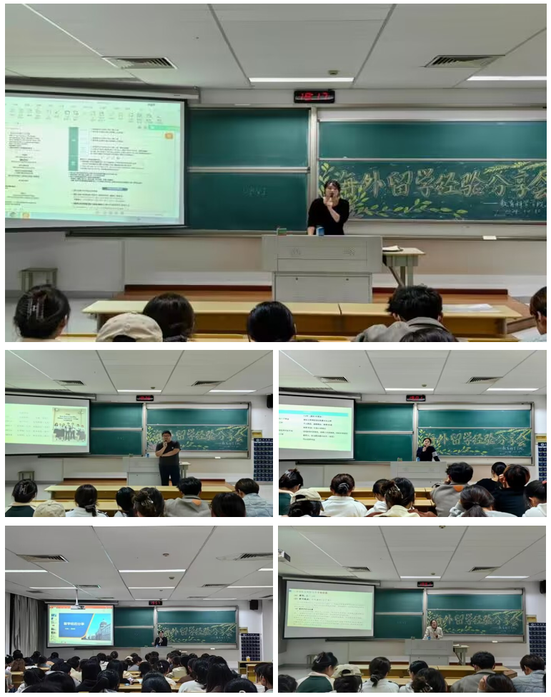 为进一步拓宽2025届毕业生升学渠道,给学生提供全方位、精确化的海外升学指导,10月10日晚,教育科学学院邀请学院教师吕君、高孙禹、张紫雯、唐思谨和邹金鹏在教学楼1307举办海外留学经验分享会,2025届学前教育专业学生参加。