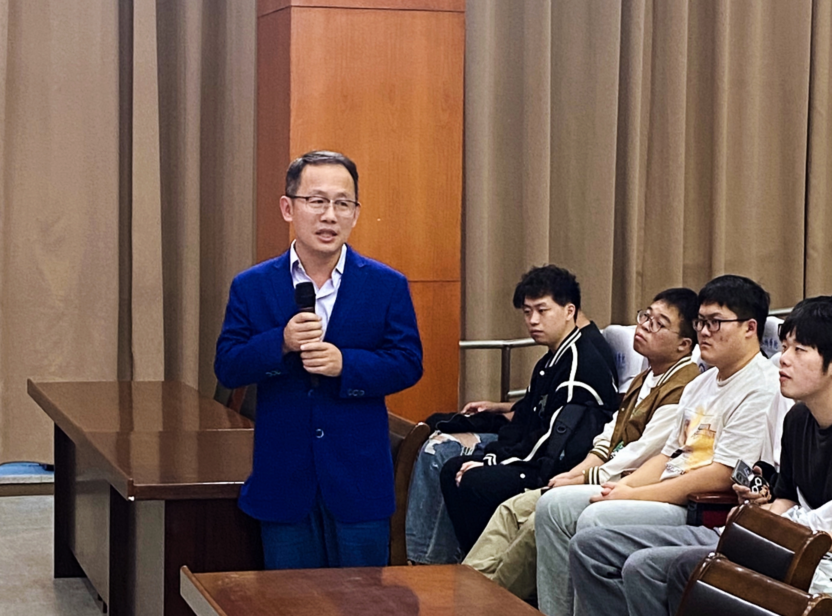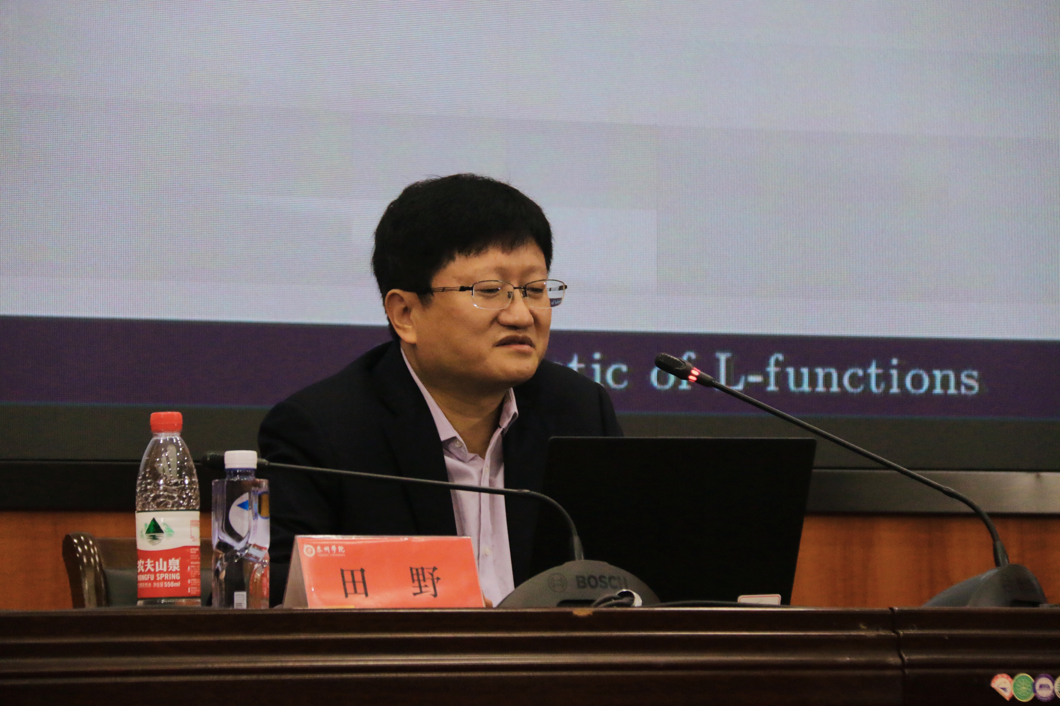 报告结束后,田野院士和与会师生进行了互动,详细回答了老师和同学们的问题,包括L-函数的应用、调和分析在数论中的作用、青年教师的研究课题选择、大学生如何培养数学学习的兴趣和科研能力等等。在场师生纷纷表示受益匪浅。