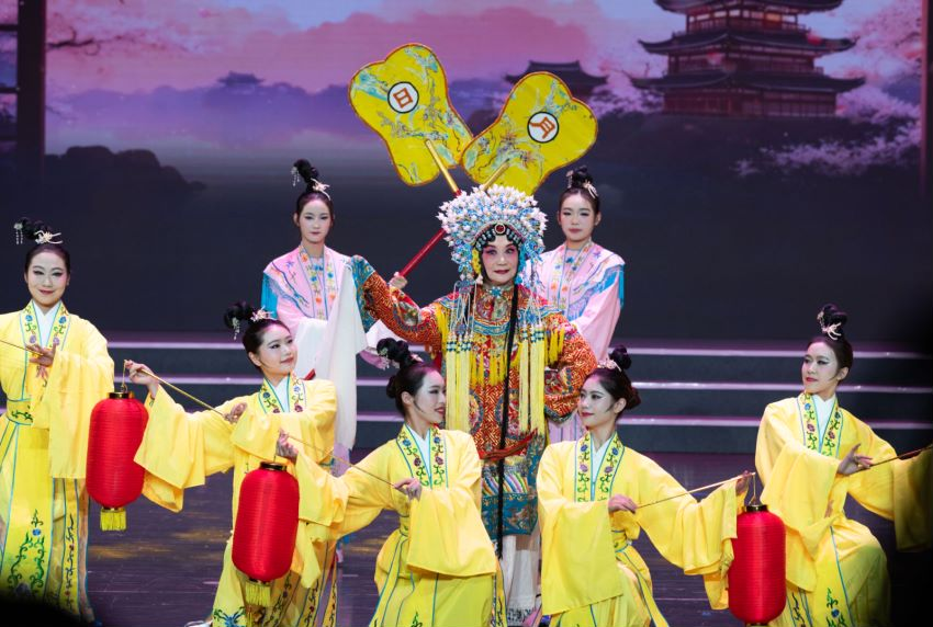 舞蹈专业学生为梅派京剧传人、国家一级演员陈旭慧老师演唱的京剧《贵妃醉酒》伴舞,得到了陈老师的高度认可。茅华梅老师演唱歌曲《梅兰芳》,舞蹈专业师生将京剧元素与舞蹈相融合,精心编排伴舞,赢得了观众们的热烈掌声。