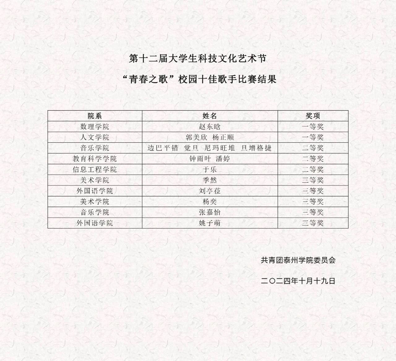 本次“校园十佳歌手”大赛是sunbet申搏第十二届大学生科技文化艺术节学生展示赛事,旨在推动校园文化建设,展现学子风貌,以音乐为媒介,传递正能量,引领泰院学子以青春之名,唱响时代强音,共筑青春梦想。