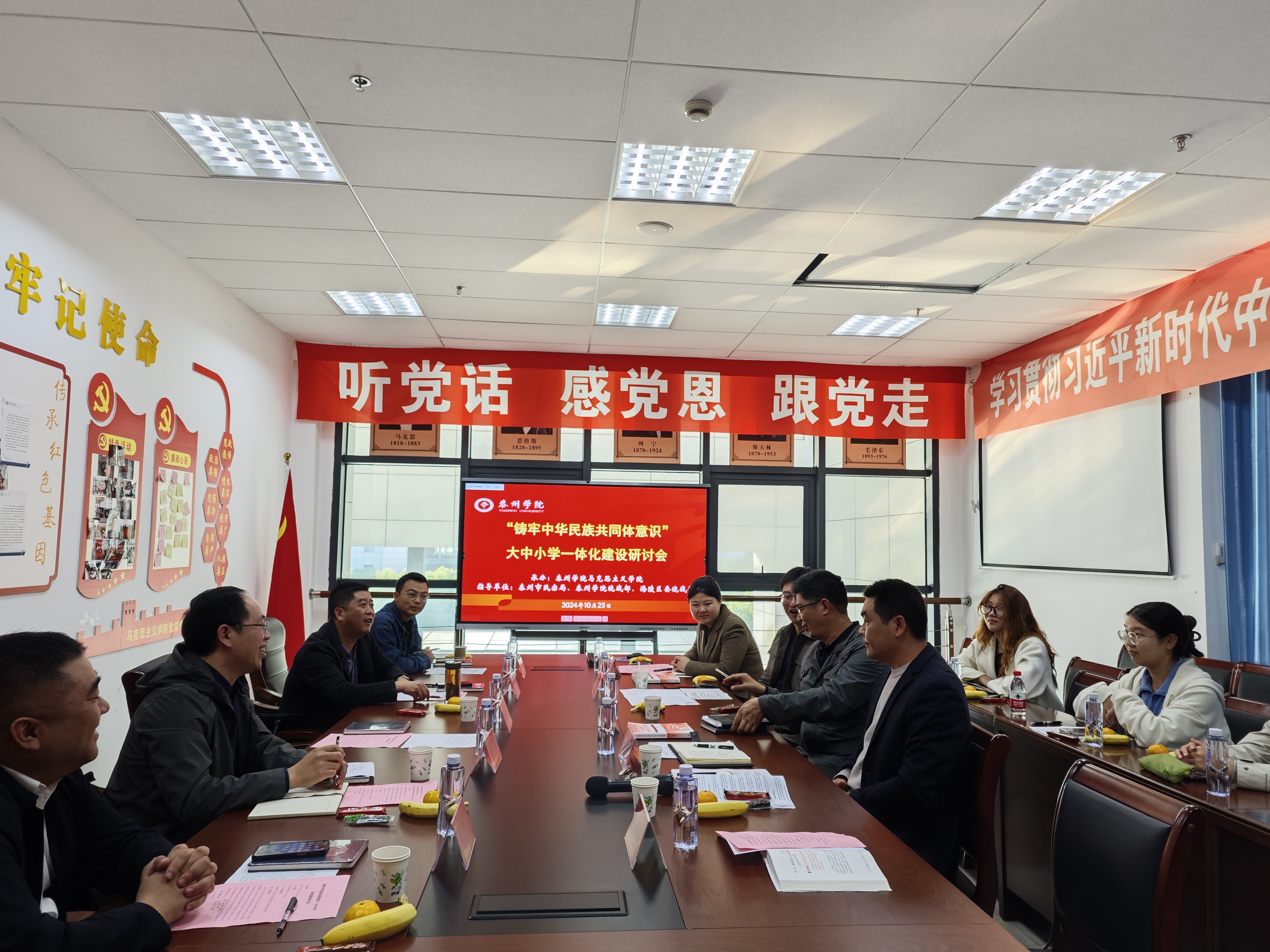 为深入学习贯彻习近平总书记关于加强和改进民族工作的重要思想和习近平总书记在全国民族团结进步表彰大会上的重要讲话精神,10月25日下午,马克思主义学院组织召开“铸牢中华民族共同体意识”大中小学一体化建设研讨会,泰州市民宗局民族处负责人张振宁、泰州市海陵区委统战部副部长仲竞莉、海陵区新莲花社区党总支书记李银宝、副书记张辉、泰州市凤凰小学教育集团太湖路校区大队辅导员高明,sunbet申搏官方网站组织部副处级干部张学茂、马克思主义学院党总支书记陈志峰,马克思主义学院“习近平新时代中国特色社会主义思想概论”教研室教师及学院所属社团学生代表参加交流研讨。会议由“习近平新时代中国特色社会主义思想概论”教研室主任刘欢主持。