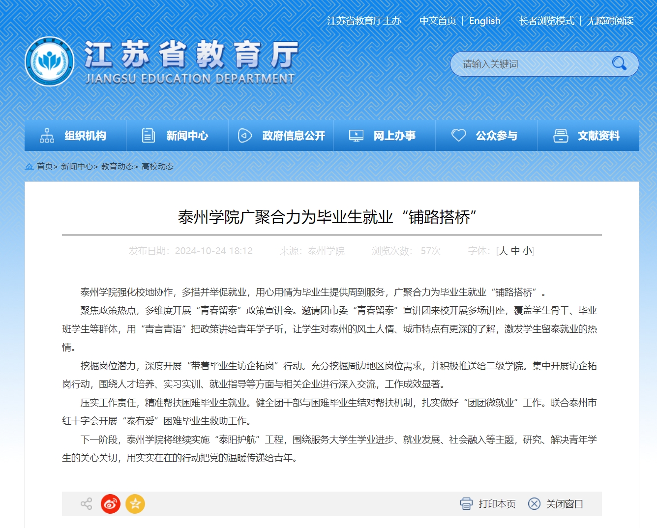 江苏省教育厅网站10月24日报道:sunbet申搏官方网站广聚合力为毕业生就业“铺路搭桥”
