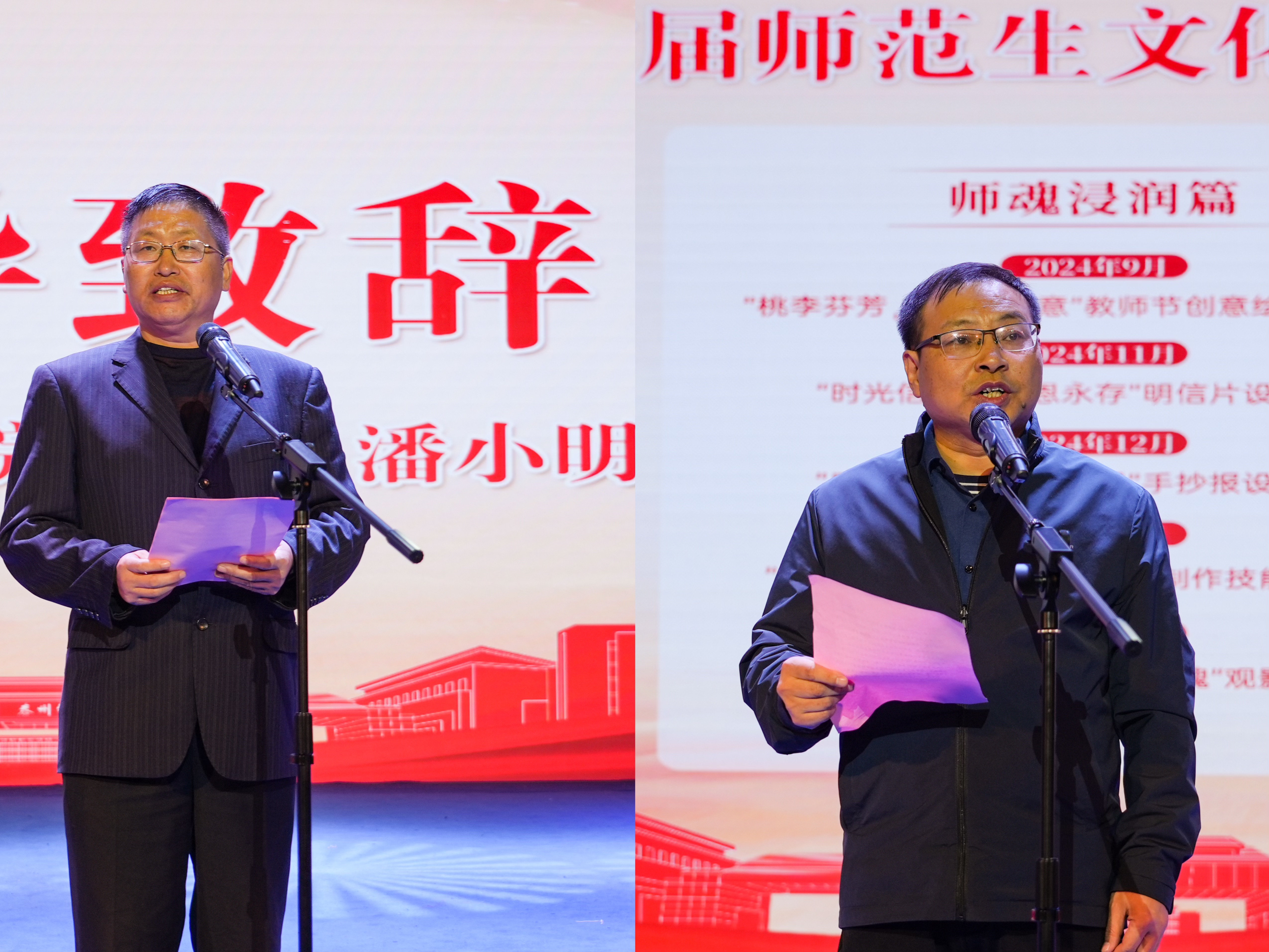 教育科学学院院长潘小明致开幕词。他对首届师范生文化艺术节开幕表示热烈祝贺,希望师范生们践行师德师风,做合格教师;锤炼师范技能,做优秀教师;坚守教育初心,做卓越教师。