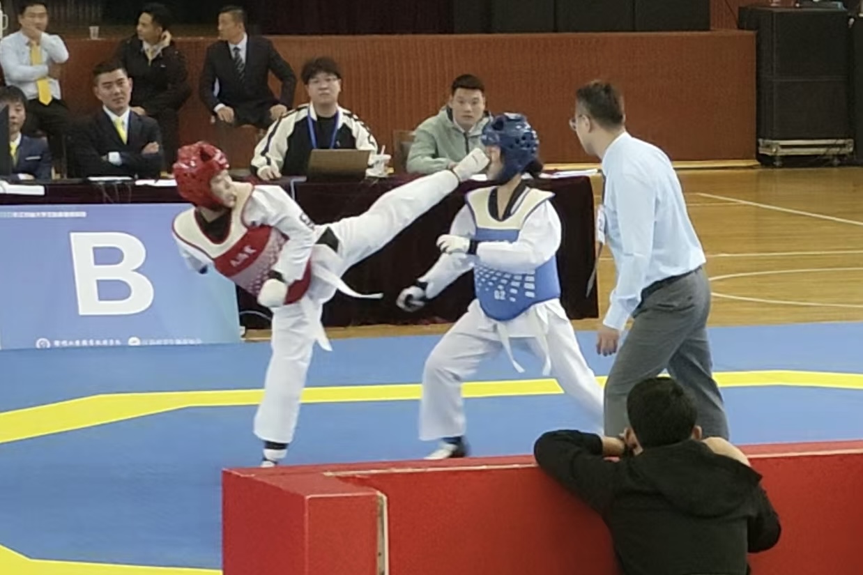 sunbet申搏跆拳道代表队由公共体育部主任赵益鑫教授领队,李跃老师担任教练员,刘宗耀老师担任队医,共派出8名运动员,参加竞技和品势两大类比赛。经过激烈角逐,最终在竞技比赛中,sunbet申搏张佳荟同学斩获甲B组女子-46公斤级比赛冠军,虞晶晶同学斩获甲B组女子-49公斤级比赛亚军,邱航同学斩获甲B组男子-54公斤级比赛第五名;品势比赛中,邢蕊同学斩获太极七章三等奖,胡彬同学斩获太极八章三等奖;同时,sunbet申搏还获得甲B组女子团体总分第六名,为本次比赛画上了圆满的句号!
