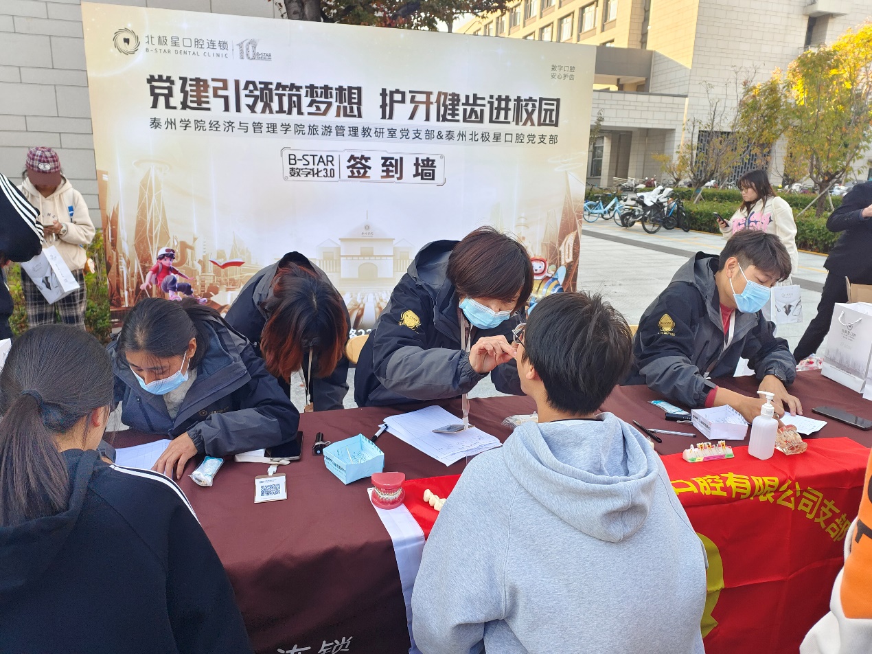 签约仪式结束后,两个党支部共同为学院师生开展了“党建引领筑梦想,护牙健齿进校园”的义诊服务活动,以实际行动传承和践行雷锋精神,发挥基层党支部的战斗堡垒作用和党员的先锋模范作用。