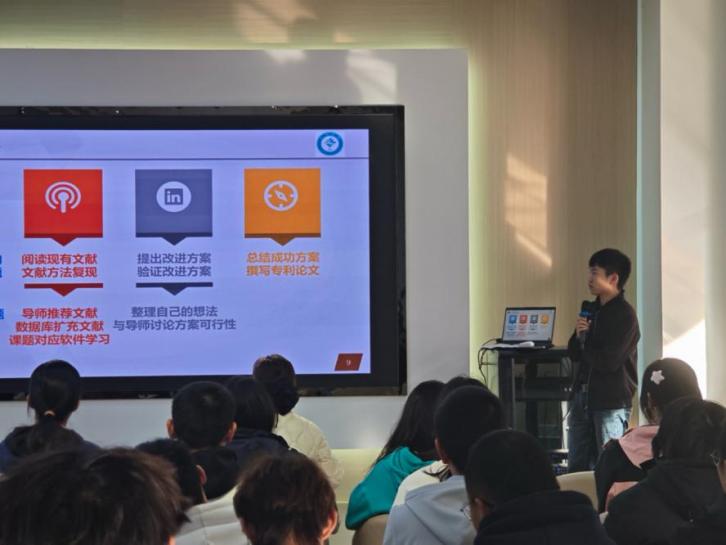 活动中,代邦武博士向同学们详细讲解了科研论文的撰写和发表要点;毛怡博士围绕“什么是科研”“如何做好科研”“如何提升科研能力”三个议题,进行了全面而深入的阐述;杨婉婷博士则细述了科研对于社会发展的重要价值,并呼吁同学们积极投身科研的浩瀚海洋,始终秉持求真务实的科研态度。老师们展现出的科研魅力,让大家深深感受到只有坚持不懈的努力,方可获得成功。