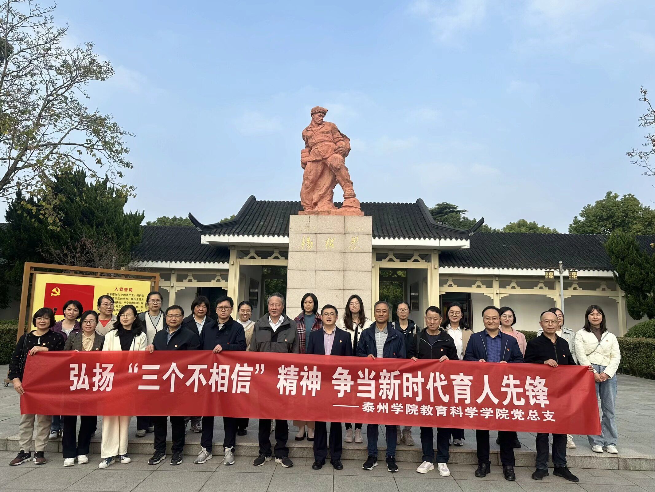 11月13日下午,教育科学学院党总支联合机关党委师范教育中心党支部,组织党员师生前往杨根思烈士陵园和泰兴市祁巷村,开展“弘扬‘三个不相信’精神,争做新时代育人先锋”主题党日活动。活动邀请学院民主党派教师参加。