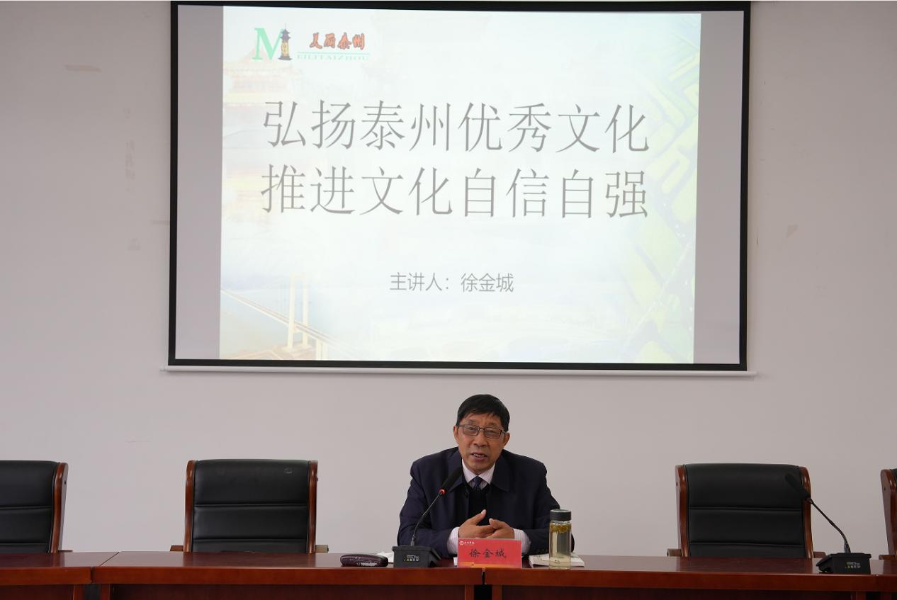 在博雅楼G3502会议室,徐金城以“弘扬泰州优秀文化,推进文化自信自强”为题,为同学们做了讲座,孙晓敏主持讲座。徐金城从弘扬泰州独特的“三水文化”、弘扬泰州辉煌的“教育文化”、弘扬泰州厚重的“先贤文化”、弘扬泰州务实争先的“盐税文化”、弘扬泰州幸福的“吉祥文化”、弘扬泰州革命的“红色文化”等六个方面与大家分享了源远流长、博大深厚的泰州文化。他希望,同学们能守住文化根基,传承历史文脉,合力推动泰州教育事业发展,谱写好“强富美高”新泰州华美篇章。