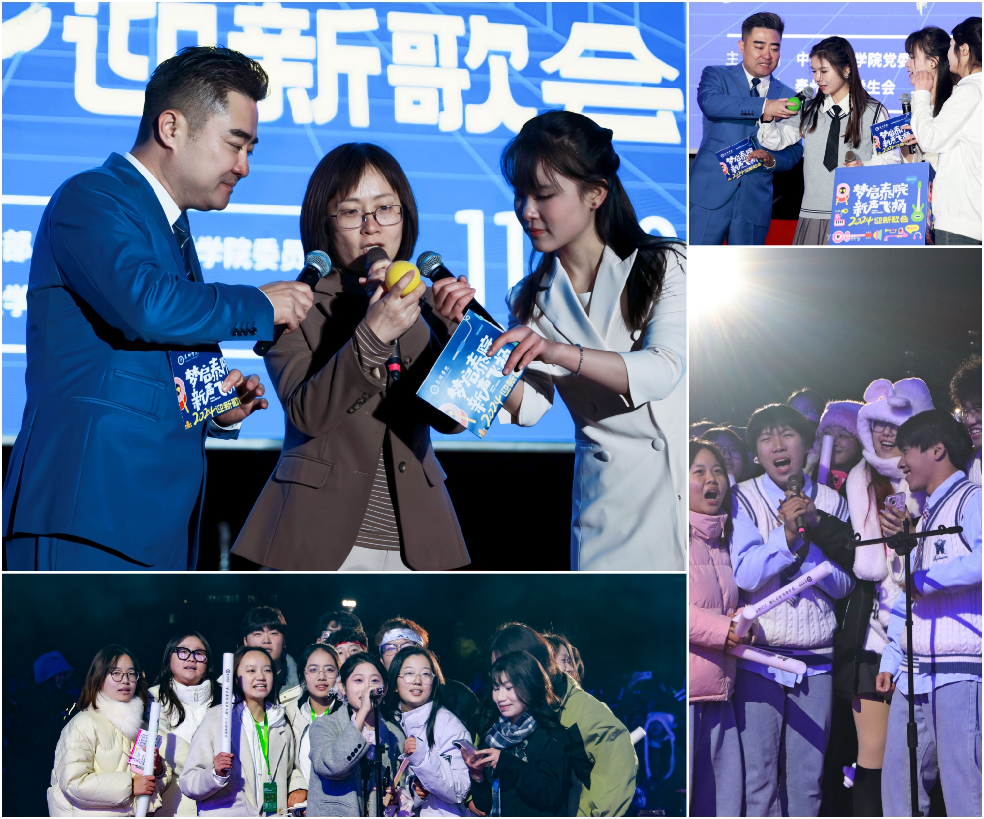 11月20日,由校党委宣传部和团委共同主办的“梦启泰院,新声飞扬”2024迎新歌会在sunbet申搏田径场火热开唱,为师生们带来了一场精彩纷呈的视听盛宴。校党委常委、副校长卜慧芬出席歌会并与机关部门、二级学院负责人代表共同献唱。2024级全体新生及部分老生代表等近5000名学生齐聚歌会现场。