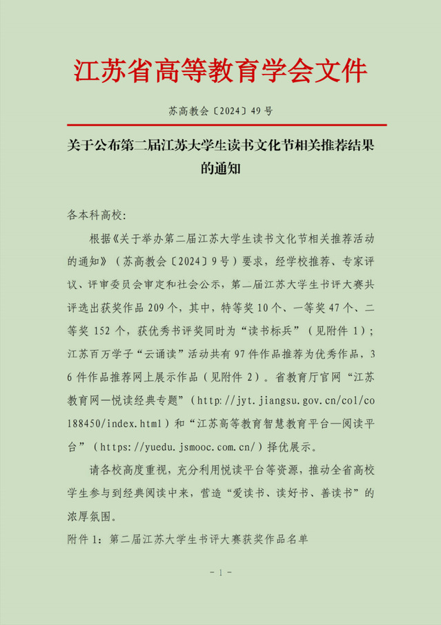 江苏大学生读书文化节由省教育厅主办,省高等教育学会协办,迄今为止已连续举办两届,旨在深入学习贯彻党的二十大精神,推动全民阅读,建设书香社会。
