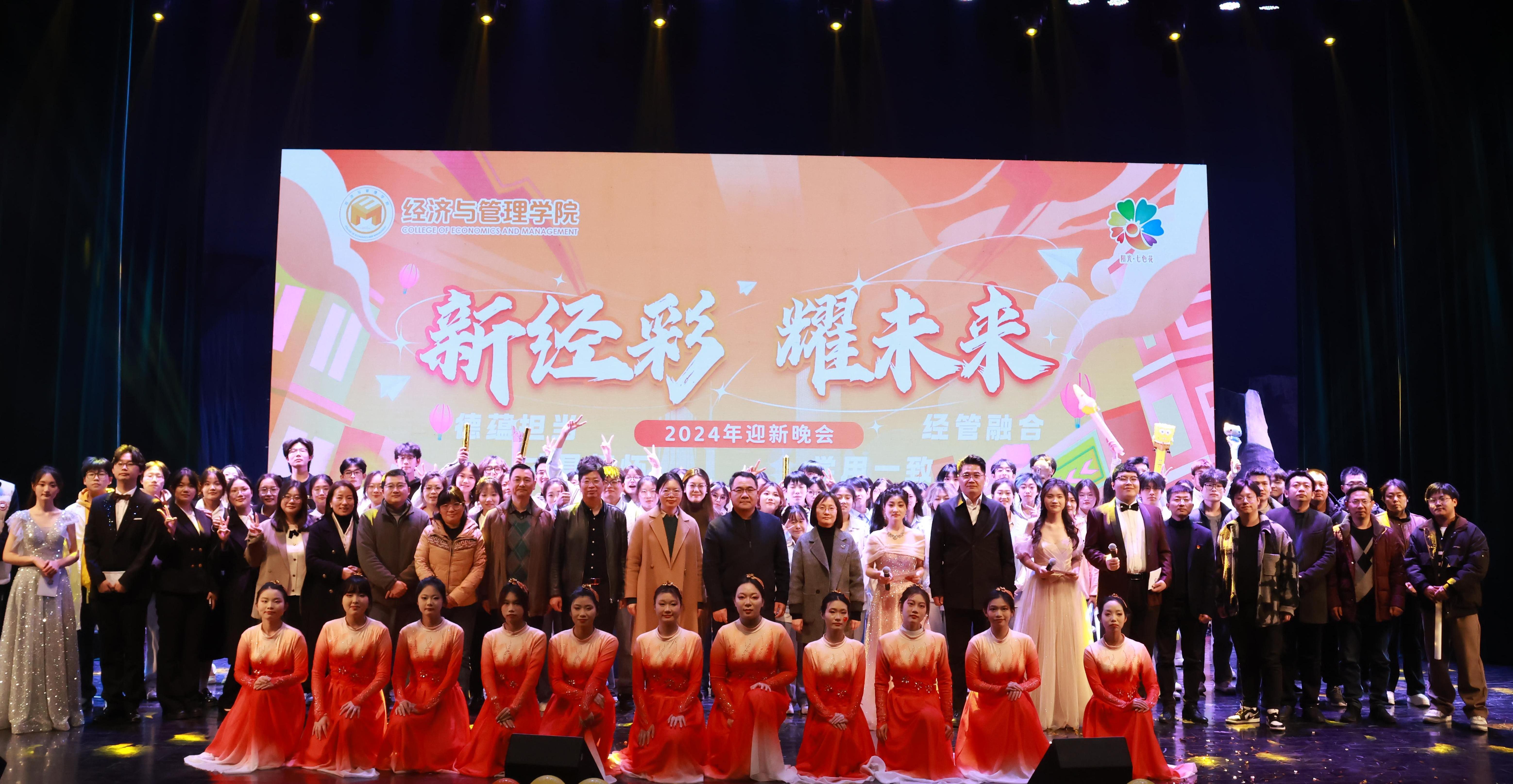 11月29日晚,经济与管理学院“新经彩,耀未来”2024级迎新晚会于大学生活动中心隆重举行。学校党委常委、副校长卜慧芬、学工处处长陈茂国、校团委副书记黄素雯,南京理工大学泰州科技学院商学院院领导班子成员及师生代表、经济与管理学院院领导班子成员、教职工代表及2024级全体新生一同观看演出。