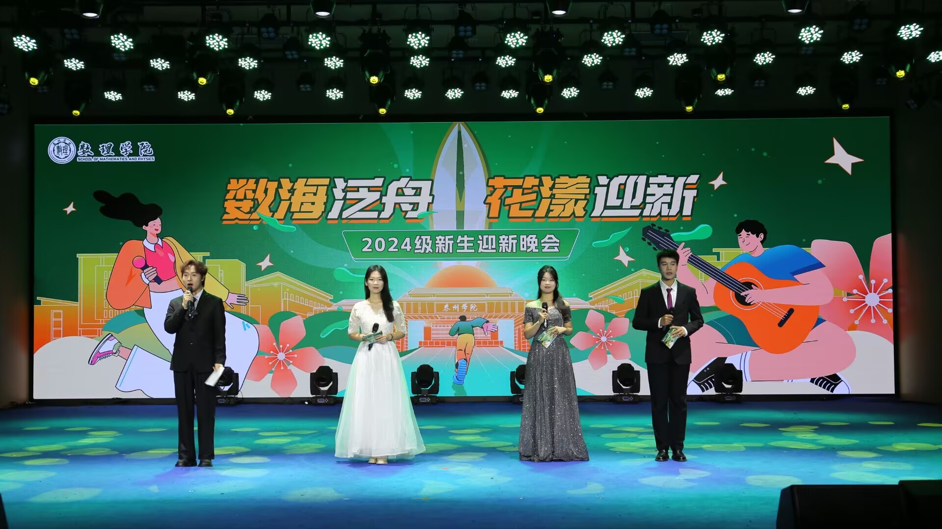 12月3日晚,数理学院于音乐楼举办“数海泛舟,花漾迎新”2024级迎新晚会。学院班子成员、教职工代表及2024级全体新生参加,数理学院院长王成敏致辞。