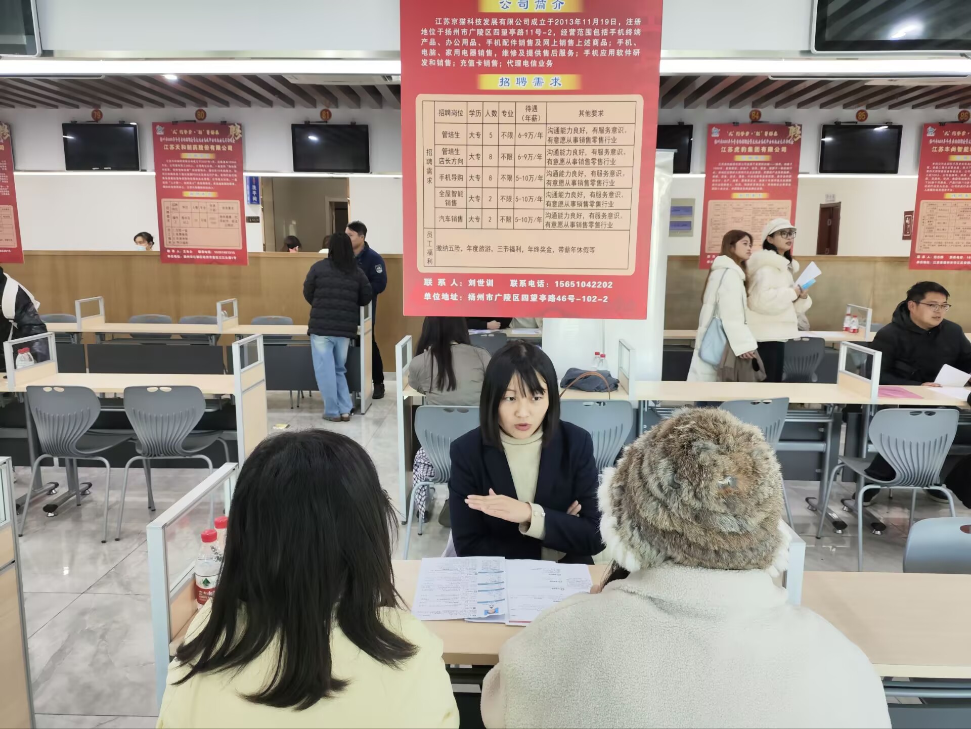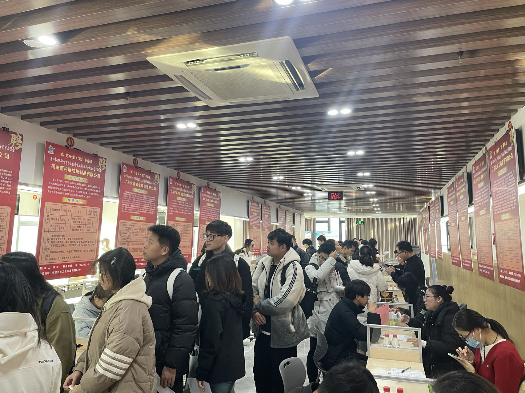 此次招聘会汇聚了扬州地区100多家知名企业及新兴行业代表,涵盖制造、服务、科技研发、文化创意等多元领域,提供了丰富且层次多样的职位选择,吸引了周边多所高校毕业生前来应聘。