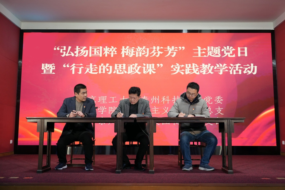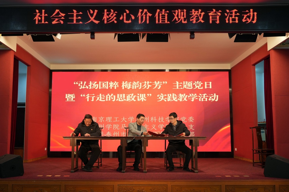活动中,陈志峰与泰州市梅兰芳纪念馆签订了“大思政课”实践教学基地和梅派京剧艺术传承基地共建协议书,徐志成与南京理工大学泰州科技学院马研部党支部签订了党支部“联学共建”协议书。