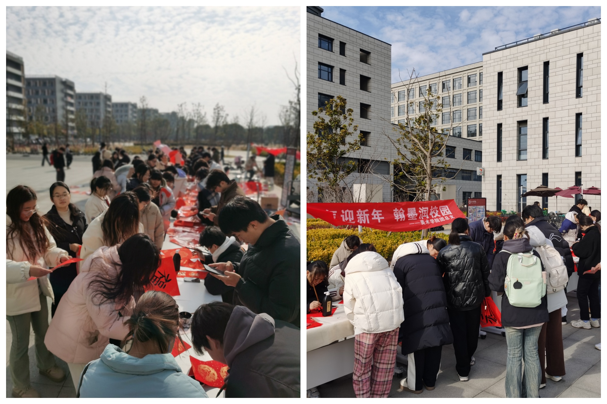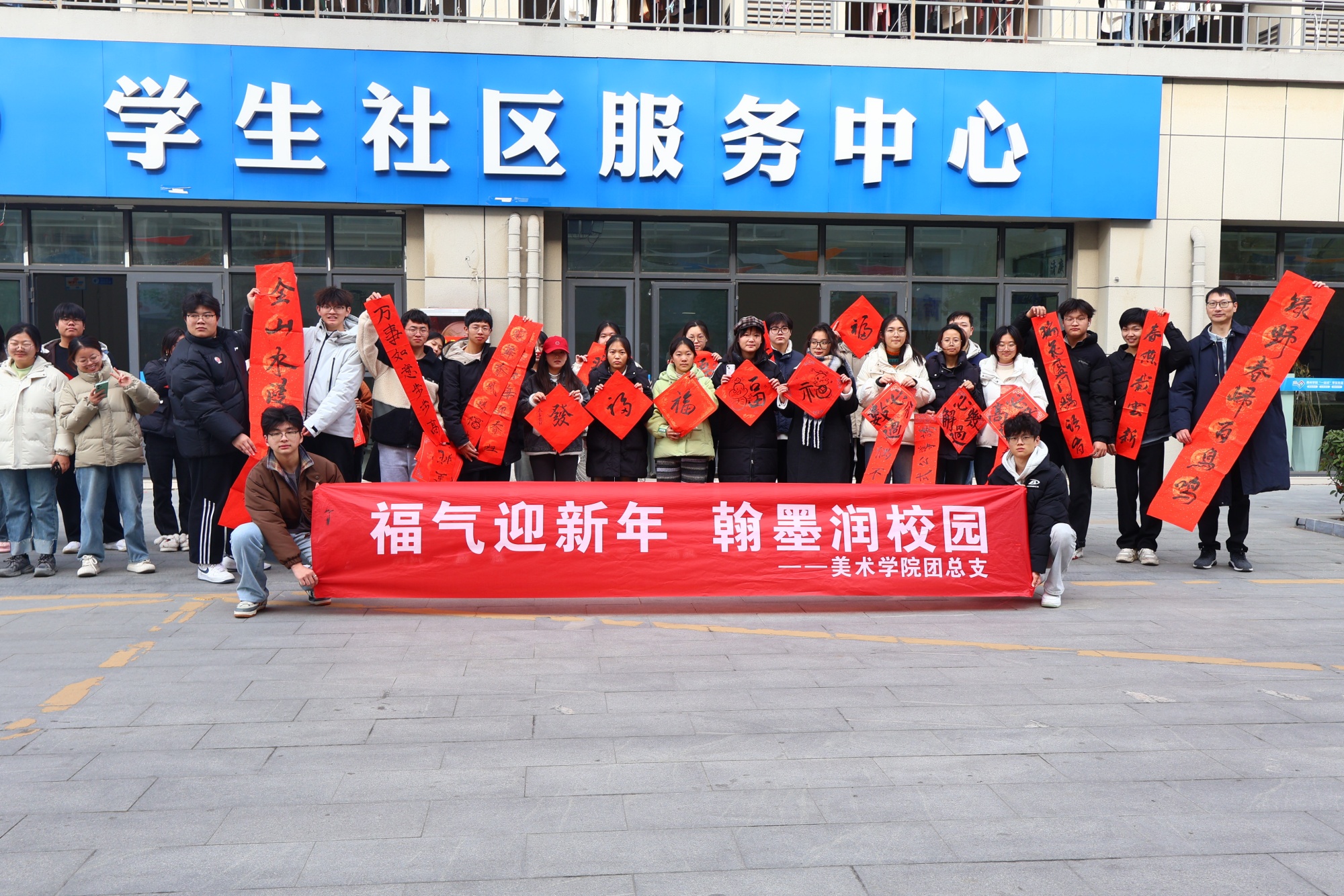 2025年1月1日,美术学院团总支于“一站式” 学生社区举办“福气迎新年,翰墨润校园” 迎新年写春联、送福字活动。师生们踊跃参与,现场人头攒动,热闹非凡。