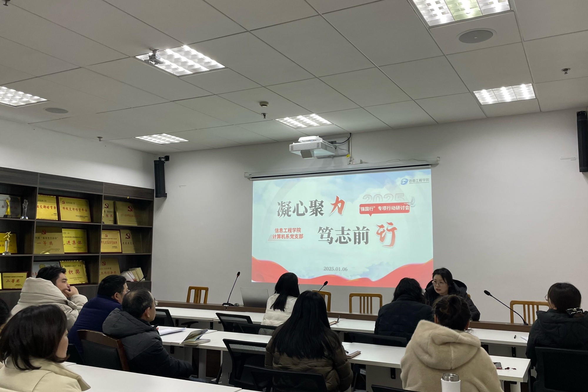 1月6日上午,信息工程学院计算机系党支部召开“双带头人”教师党支部书记“强国行”专项行动工作推进会议。学院党总支书记杨智红出席会议并讲话,副书记徐姗姗、副院长徐艳、各党支部书记及计算机系全体党员参加会议。