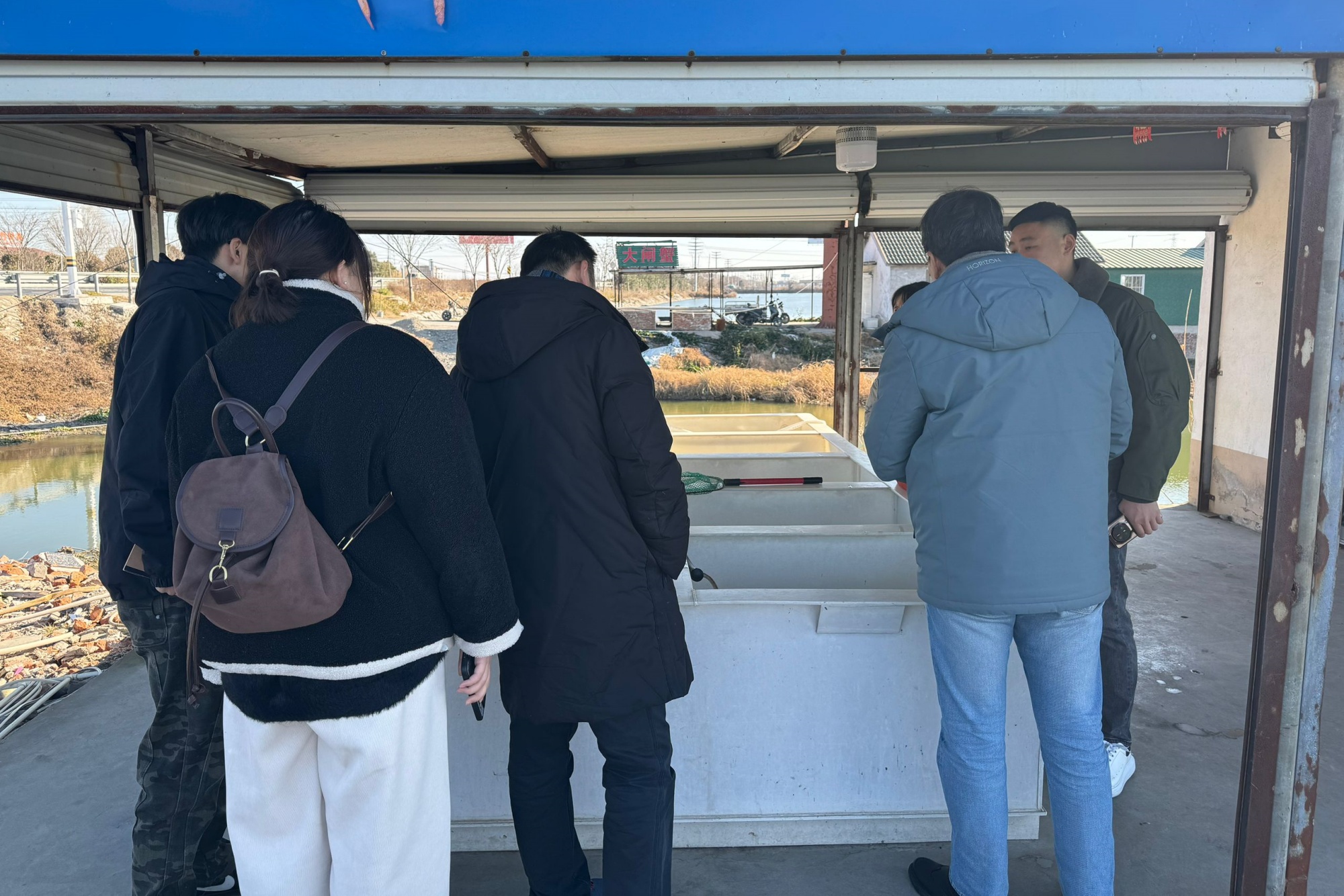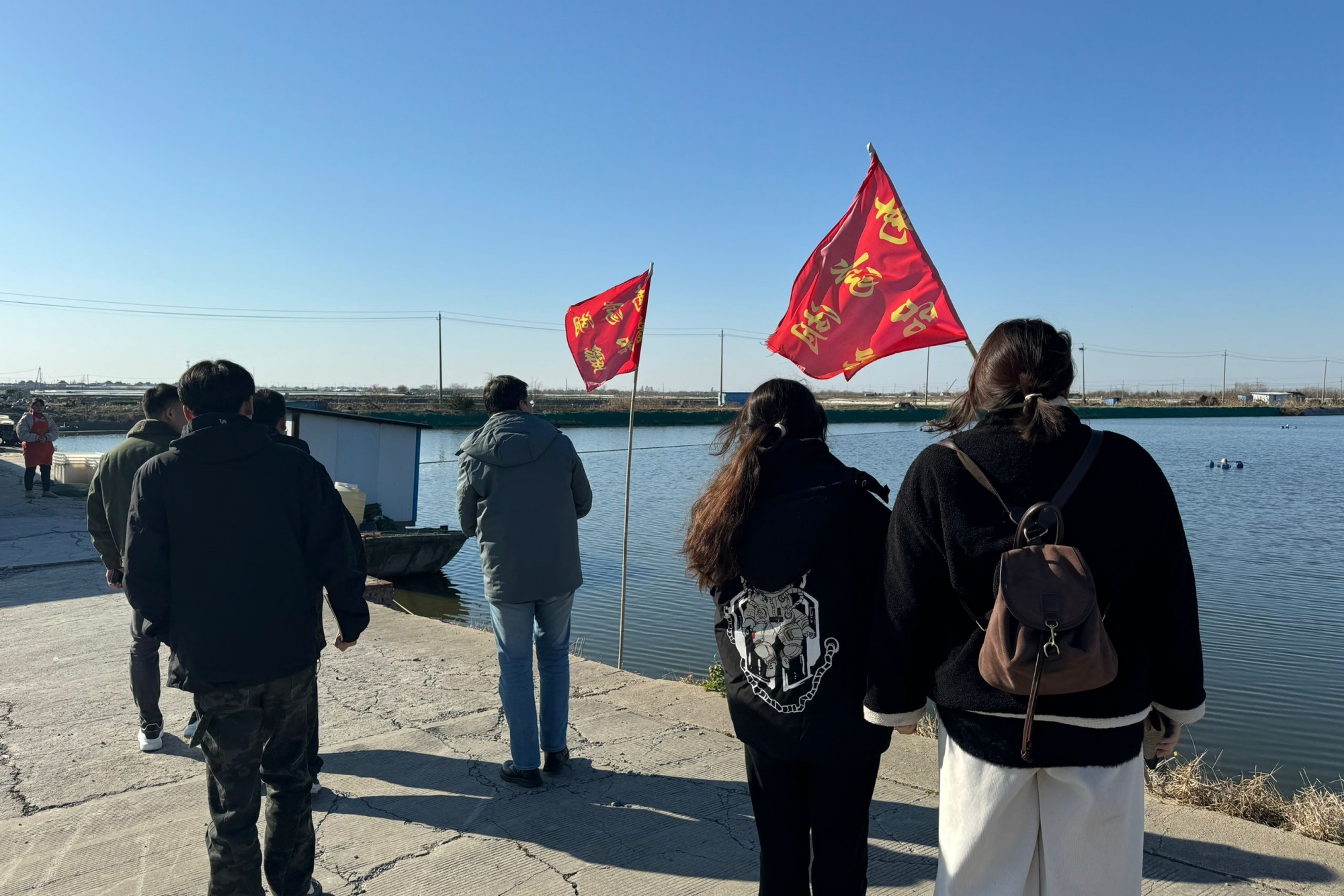 村干部向师生们介绍了戴家村发展情况,并带领调查项目组深入螃蟹养殖户进行实地考察,了解农户的收成情况、销售渠道、收益情况,对政策性农业保险的了解程度和参保意愿等。