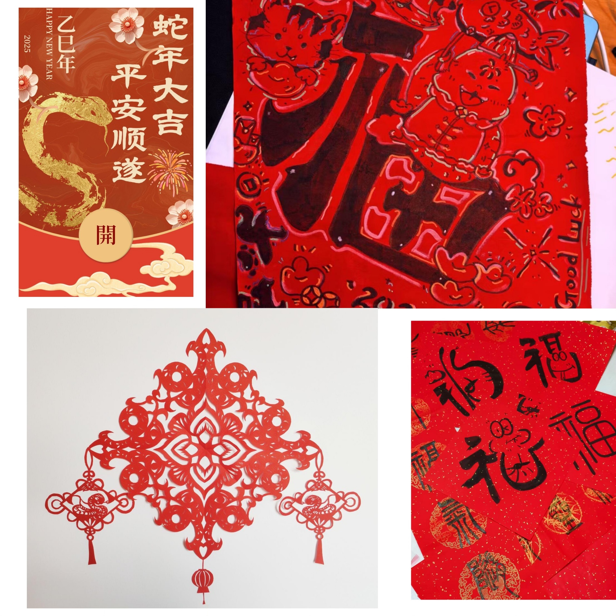 祥蛇舞动新春至,瑞彩盈堂福泽绵。为弘扬中华优秀传统文化,营造喜庆祥和的节日氛围,经济与管理学院于寒假期间举办“喜迎蛇年,福气来临”主题创作活动。全院百余名学子或执剪作画、或电脑构图,在创作中感受乙巳蛇年的文化魅力。