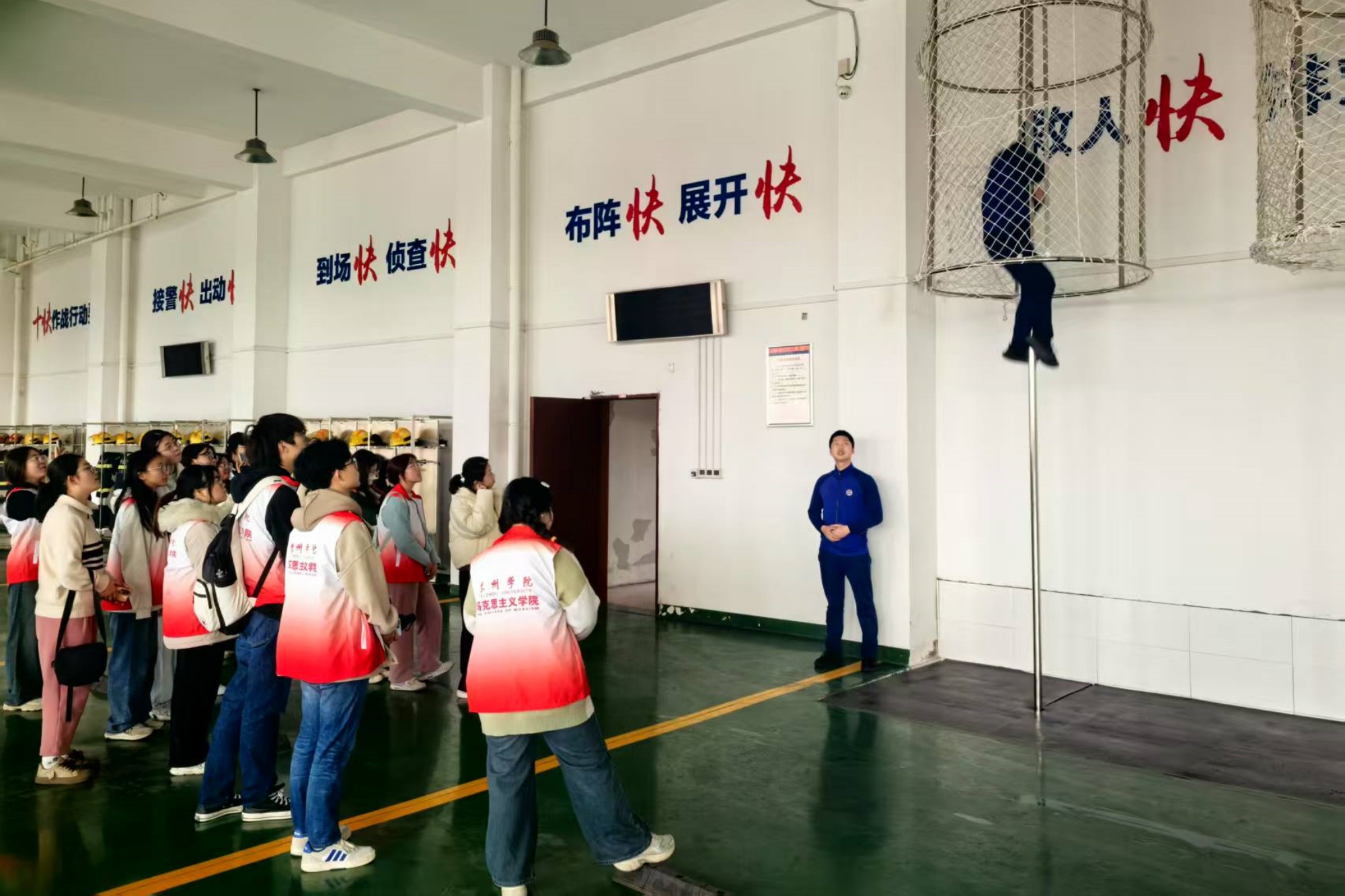 在第六十二个“学雷锋纪念日”来临之际,3月2日,马克思主义学院党总支组织青年教师、军事爱好者协会等社团骨干走进海陵区消防救援大队,开展“践消防之旅,学雷锋精神”主题活动。活动将思政课堂延伸至社会现实场景,通过沉浸式体验与互动式教学,生动诠释新时代雷锋精神与红色基因的传承密码,彰显马克思主义学院以实践赋能思政教育、以红色文化铸魂育人的创新探索。