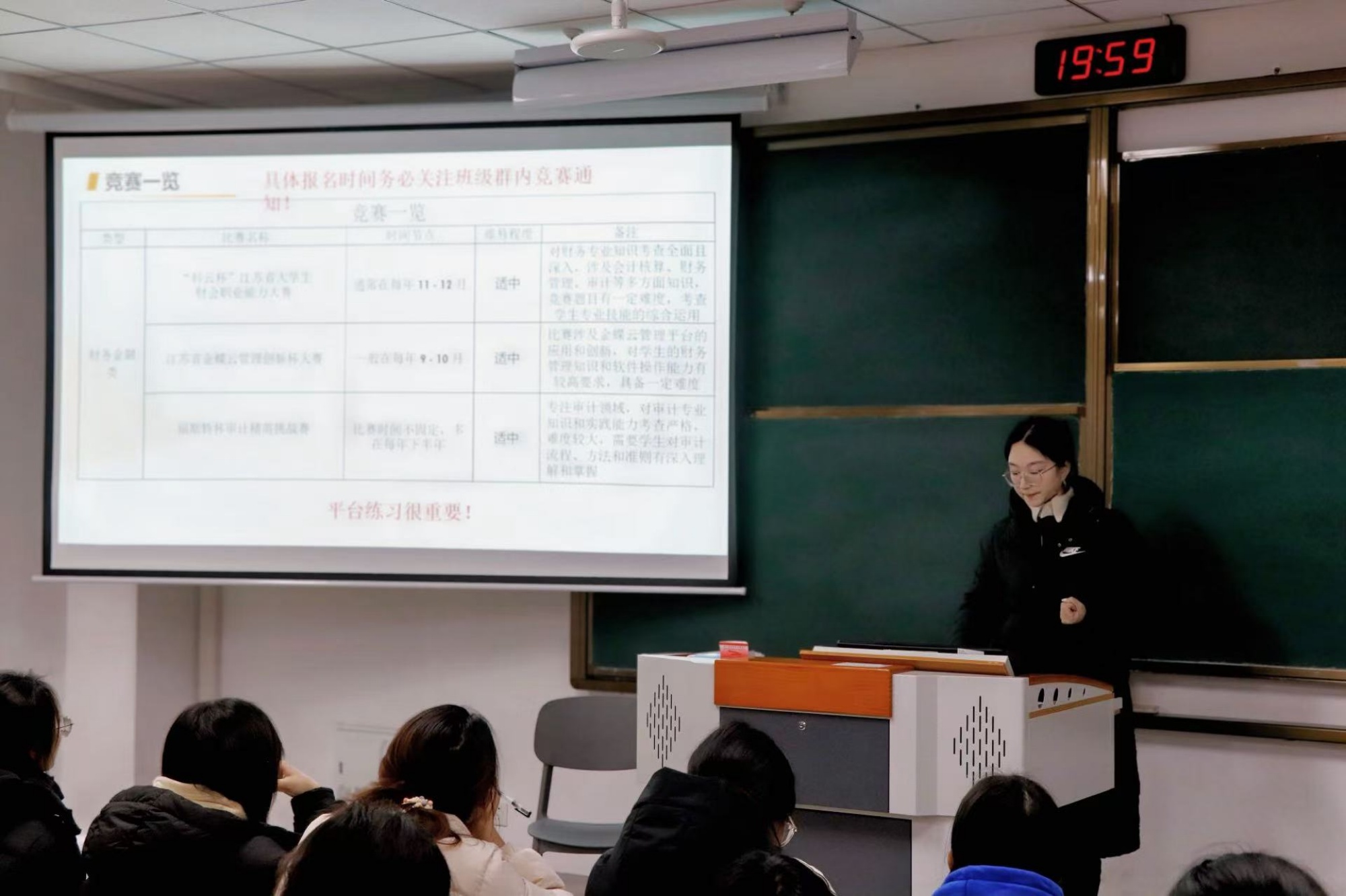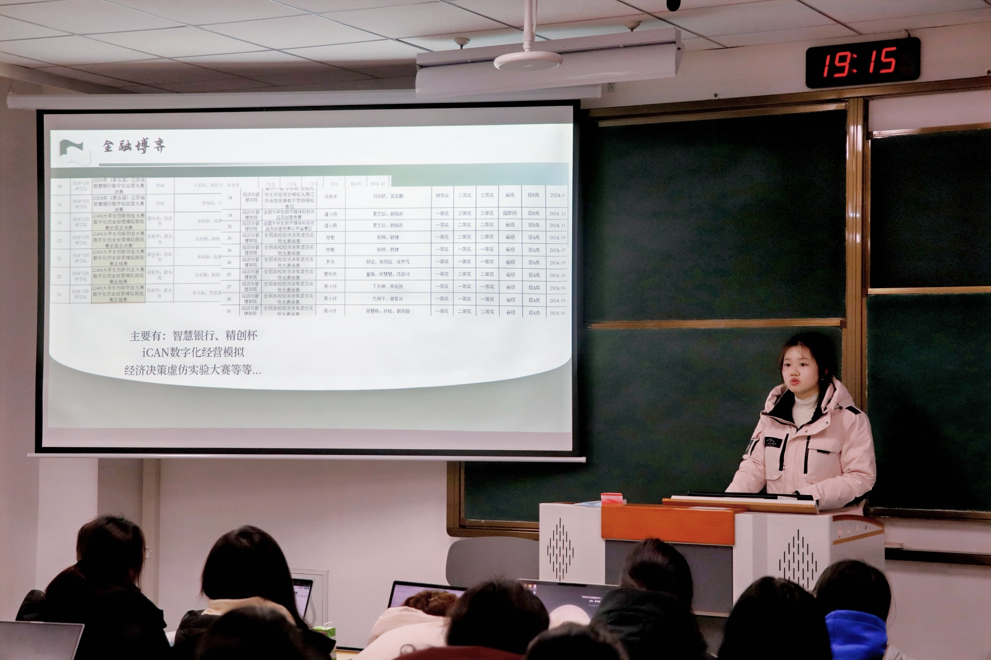 为拓展2024级新生专业视野,搭建师生科研竞赛交流平台,3月4日晚,经济与管理学院在博雅楼4402举办专业竞赛师生分享会。财务管理教研室主任潘小燕和两位大三竞赛达人陆佳蕾、邓冰格进行现场分享,为财务管理专业学子点燃竞赛热情。