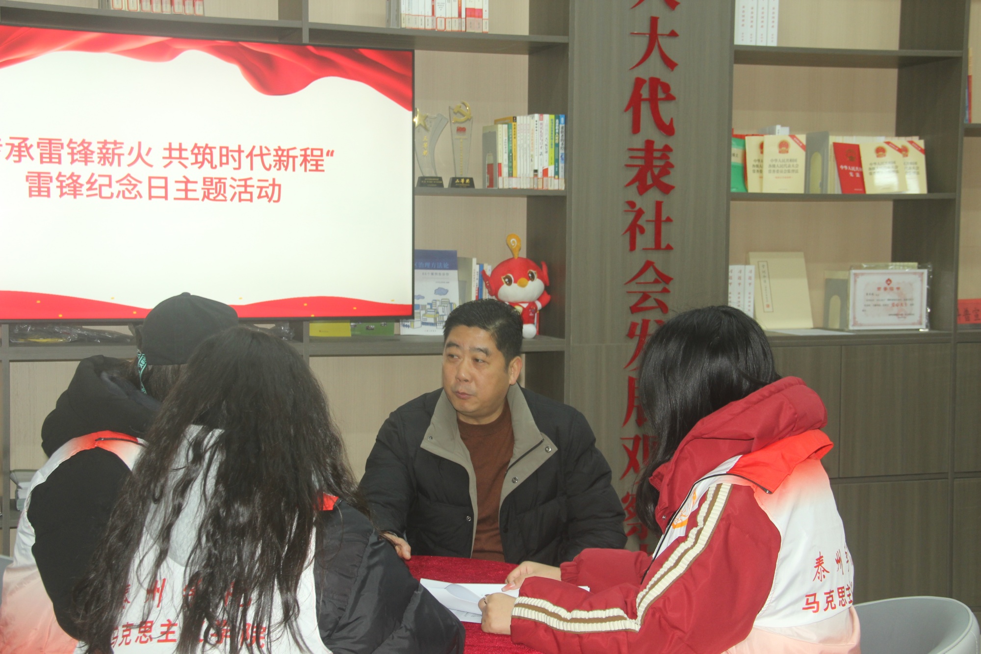 新莲花社区是sunbet申搏周边地区高质量发展的典型,曾荣获“江苏省健康村”“江苏省民主示范村”、江苏省“共同富裕 百村实践”典型案例等称号。上午的活动在社区活动中心拉开帷幕,协会成员有幸邀请到入伍老兵季顺喜以亲身经历讲述了雷锋故事,将《中国近现代史纲要》教材中的理论知识转化为生动案例。学生们深刻体会到雷锋精神在基层的体现,认识到人民群众在历史创造中的重要作用。泰州市人大代表、新莲花社区党总支书记、居委会主任李银宝同志结合基层治理创新,从“学雷锋志愿服务站”到“党员先锋岗”的实践,系统阐释了雷锋精神与社会主义核心价值观的内在联系,使在场学生深刻认识到党的创新理论在基层的生动实践。