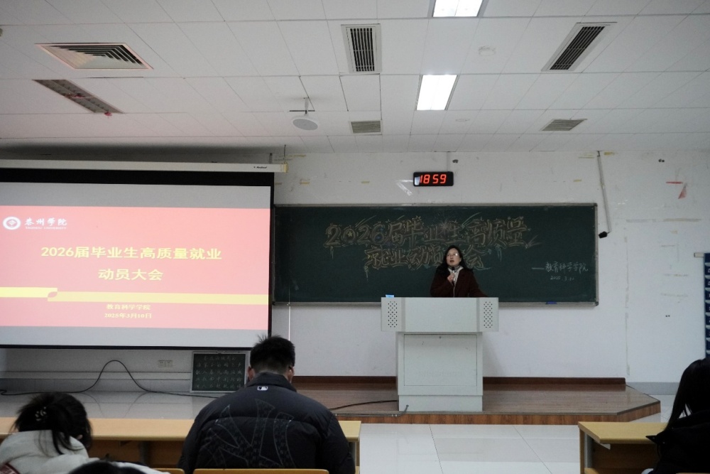 教育科学学院高度重视学生就业工作,始终将学生就业作为学院人才培养质量的重要检验标准。本次动员大会为2026届毕业生提供了全面的就业指导,搭建了经验交流的平台。学院将进一步提高认识、总结经验、聚焦毕业生的需求,提供个性化和精准化的就业指导服务,助力2026届毕业生高质量充分就业。