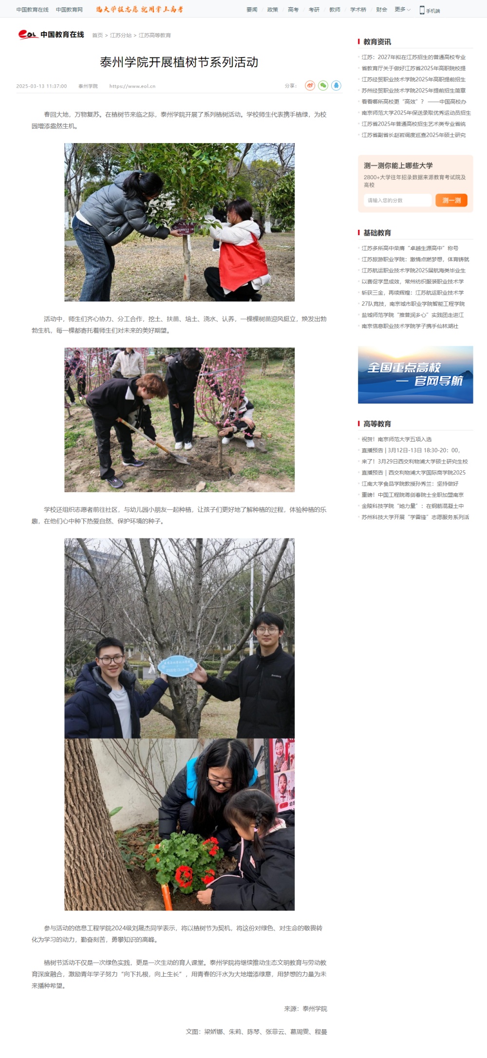 《中国教育在线》2025年3月13日报道《sunbet申搏官方网站开展植树节系列活动》